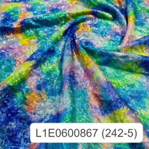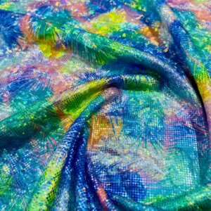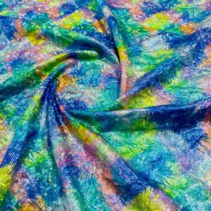 Metallic Multicolor Neon Palm Leaves Print Nylon Lycra Spandex Fabric 4 Way Stretch By Yard for swimwear dancewear gymwear sportwear dress (158-5)