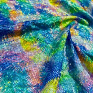 Metallic Multicolor Neon Palm Leaves Print Nylon Lycra Spandex Fabric 4 Way Stretch By Yard for swimwear dancewear gymwear sportwear dress
