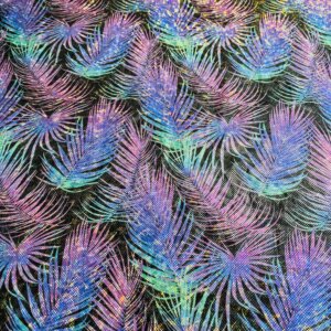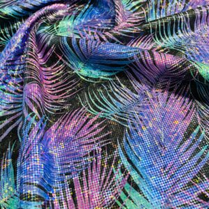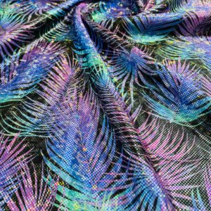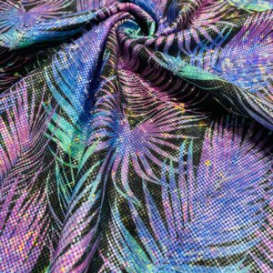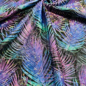 Metallic Purple and Aquamarine Leaves Print Nylon Lycra Spandex Fabric 4 Way Stretch By Yard for swimwear dancewear gymwear sportwear dress (158-1)