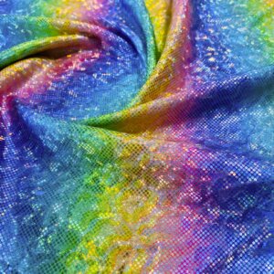 Metallic Rainbow Leopard Animal Print Nylon Lycra Spandex Fabric 4 Way Stretch By Yard for swimwear dancewear gymwear sportwear dress