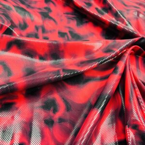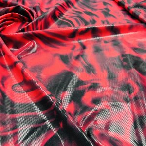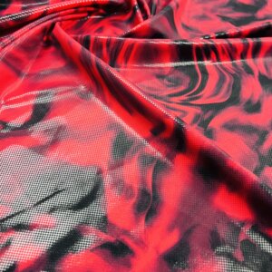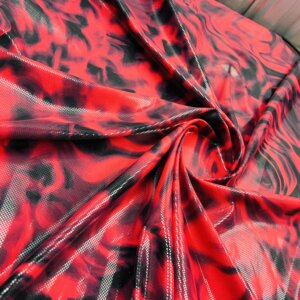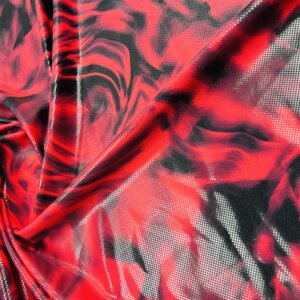 Metallic Red Tie Dye Print Nylon Spandex Fabric 4 Way Stretch By Yard for swimwear dancewear gymwear sportwear (205-1)