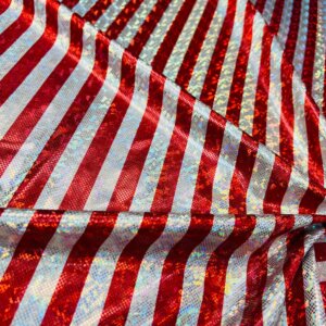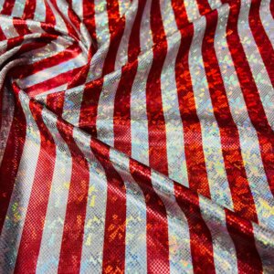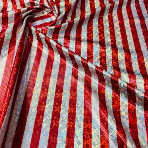 Metallic White And Red Stripes Print Nylon Lycra Spandex Fabric 4 Way Stretch By Yard for swimwear dancewear gymwear sportwear dress (203-2)