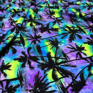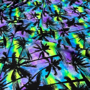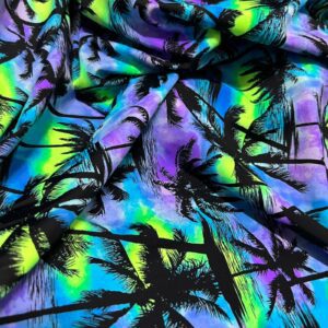You are viewing Miami Palm Trees Print Nylon Lycra Spandex Fabric 4 Way Strech by Yard for swimwear dancewear dress gymwear