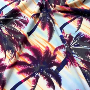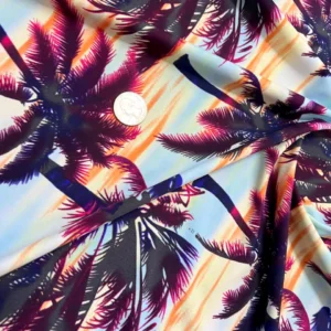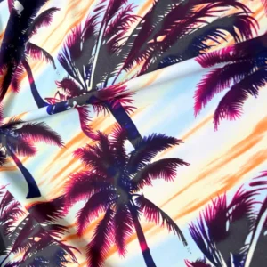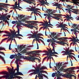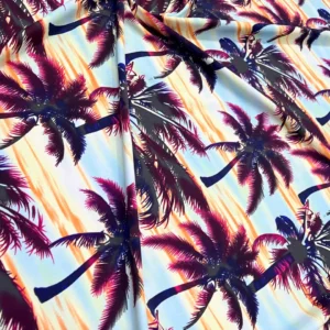 Miami Palm Trees Print Nylon Lycra Spandex Fabric 4 Way Stretch by Yard for Swimwear, Dancewear, Sportwear, Dress (203-11)