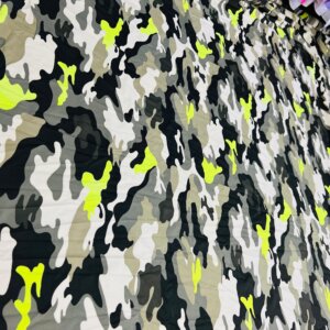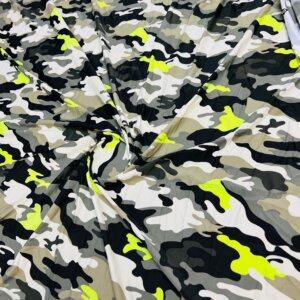Military Camouflage with Neon Yellow Print Nylon Lycra Spandex Fabric 4 Way Stretch By Yard for swimwear dancewear gymwear sportwear dress (243-2)