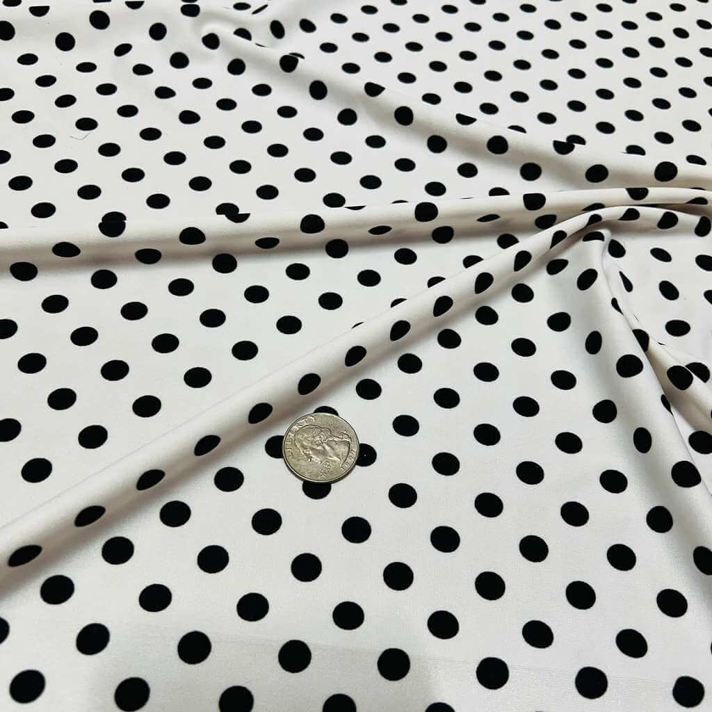 Mini White and Black Polka Dots print Nylon Lycra Spandex Fabric 4 Way Stretch By Yard for swimwear dancewear gymwear sportwear dress (159-7) (24)