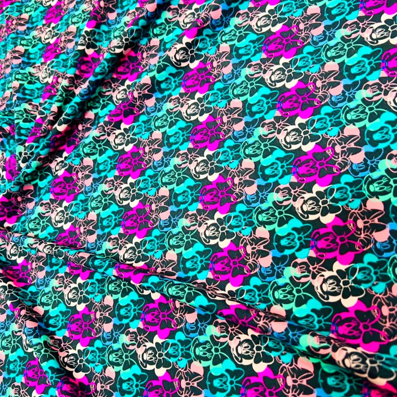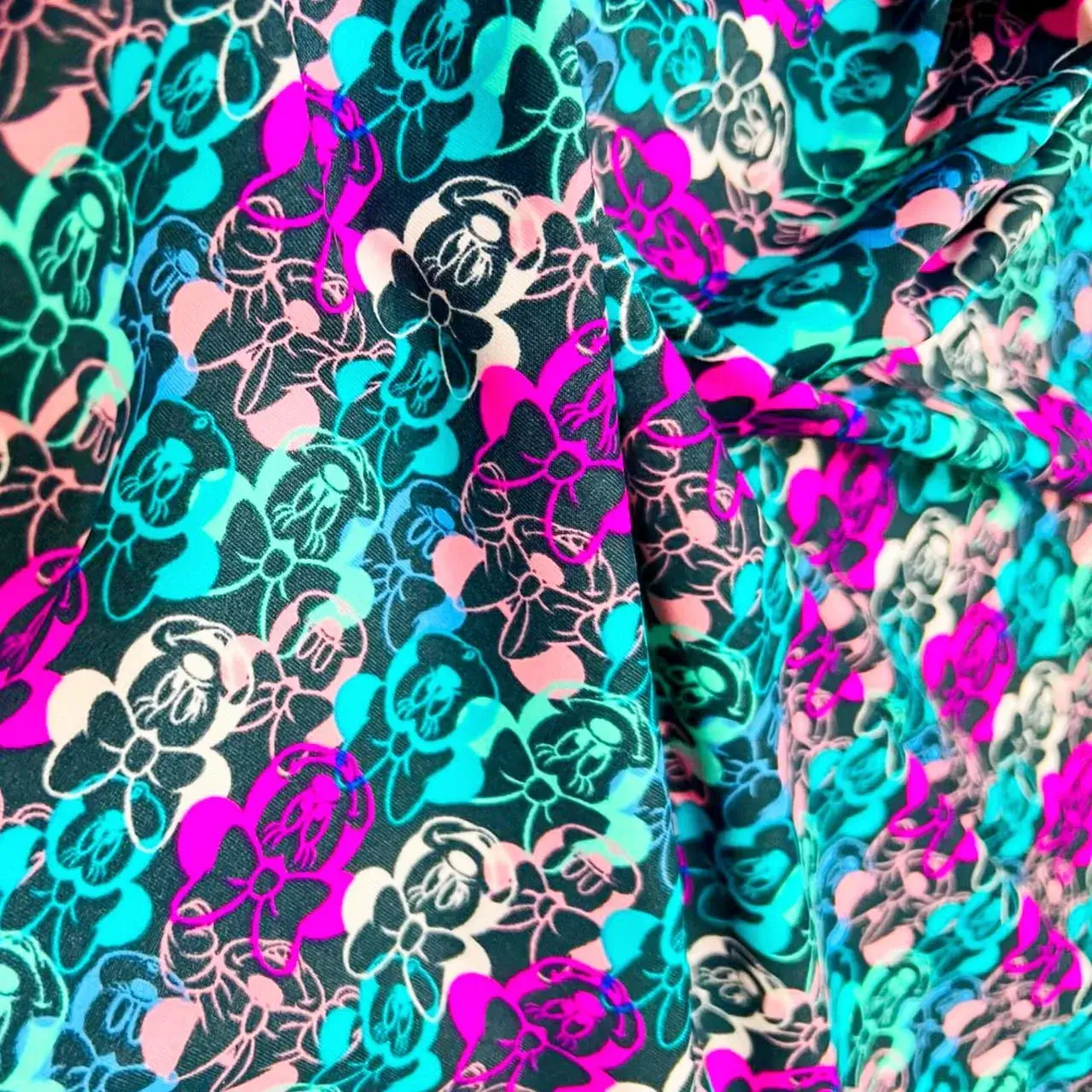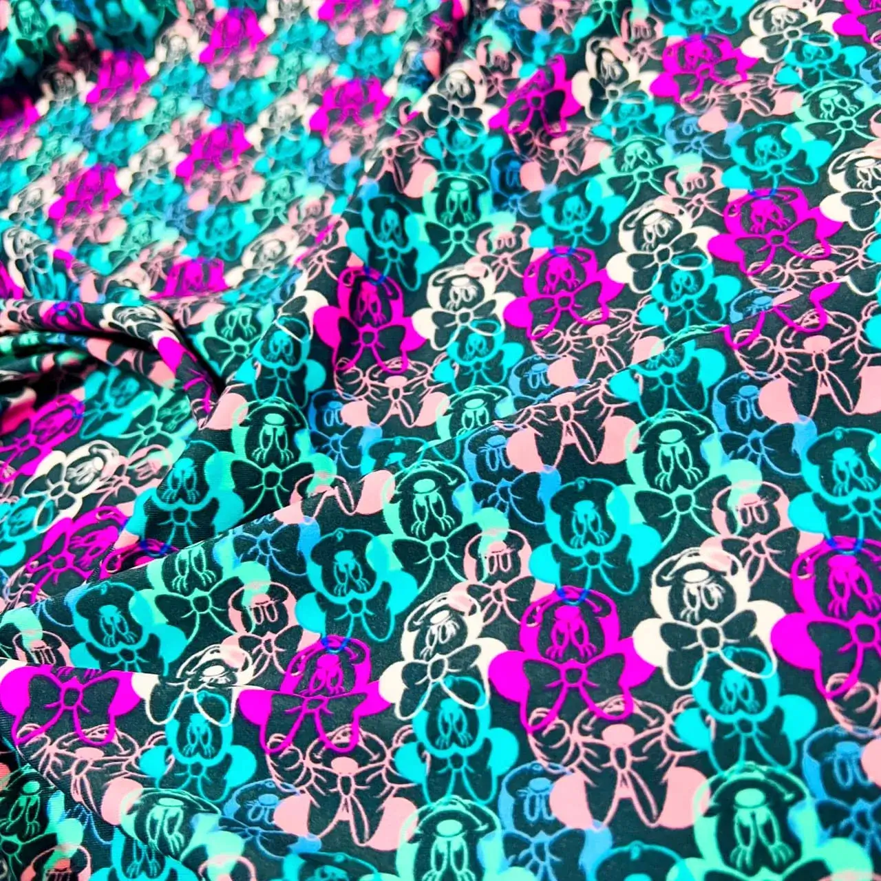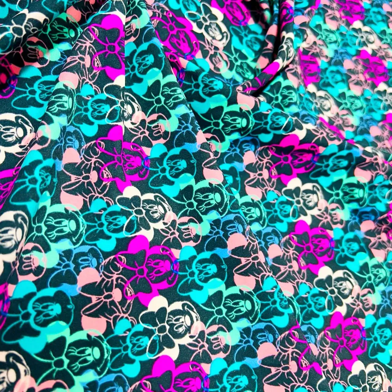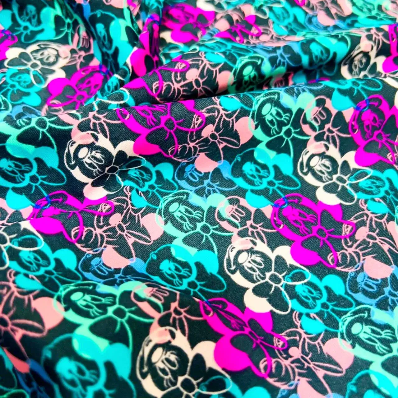 Minnie and Mickey Print Nylon Lycra Spandex fabric four way Stretch by Yard for swimwear dancewear dress gymwear (203-6)
