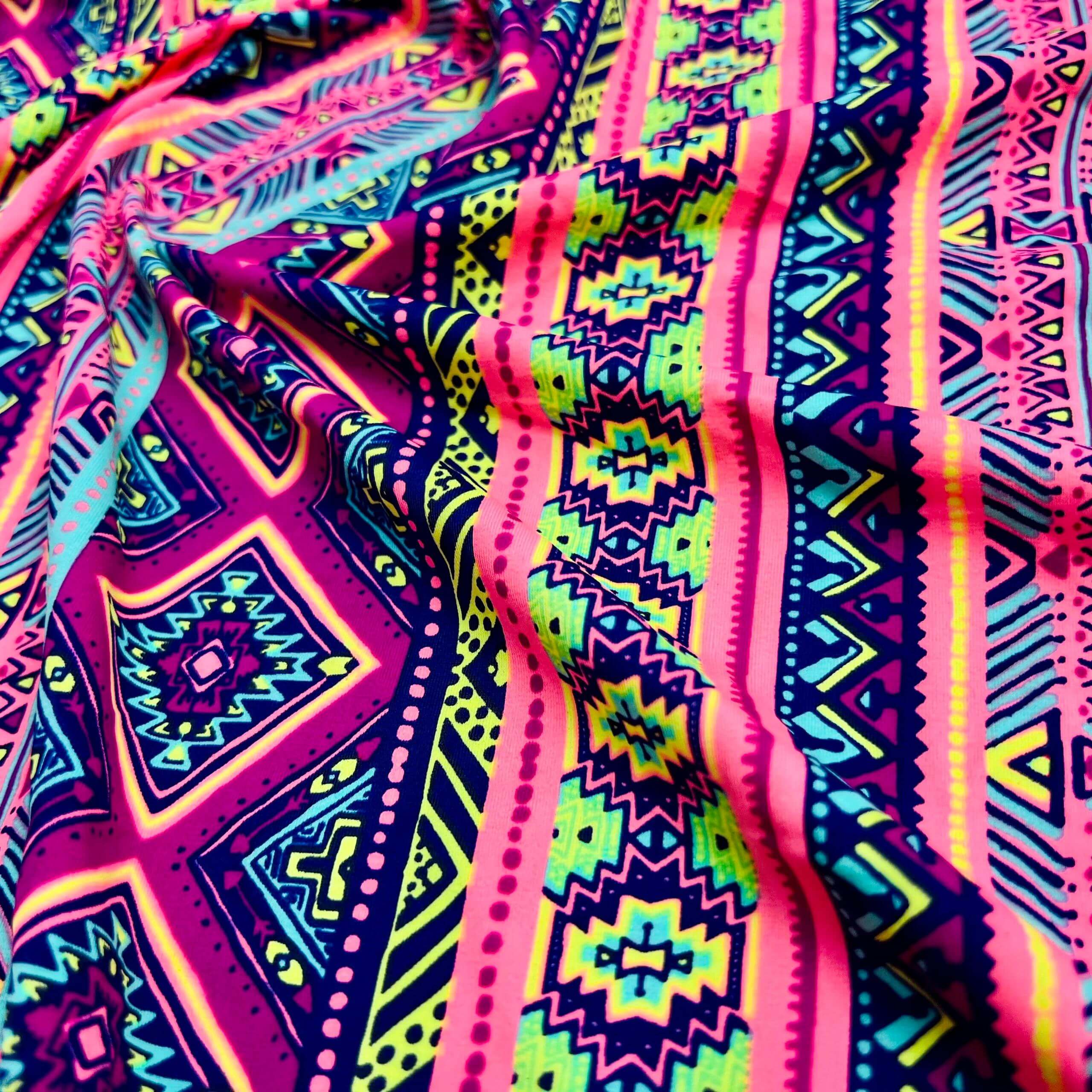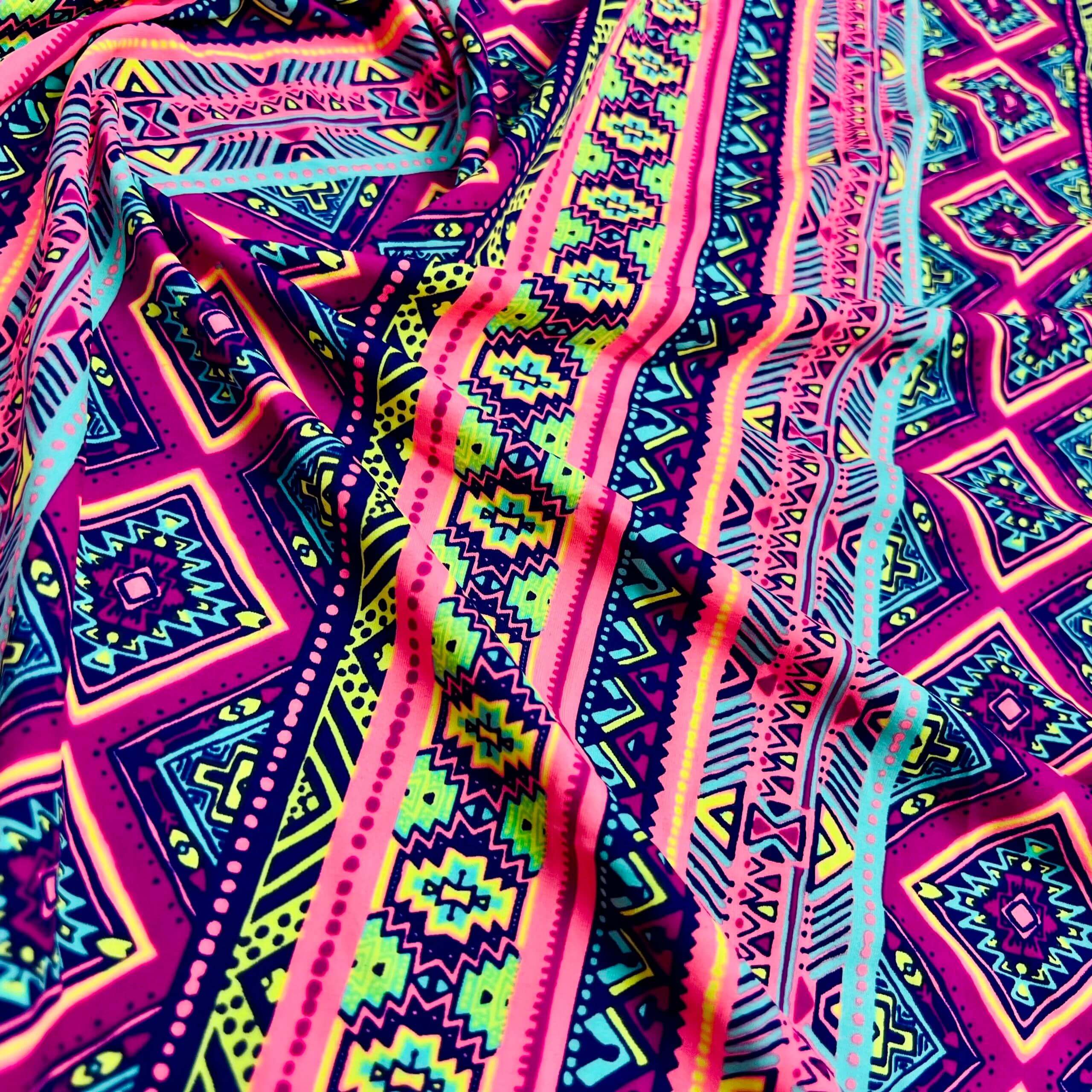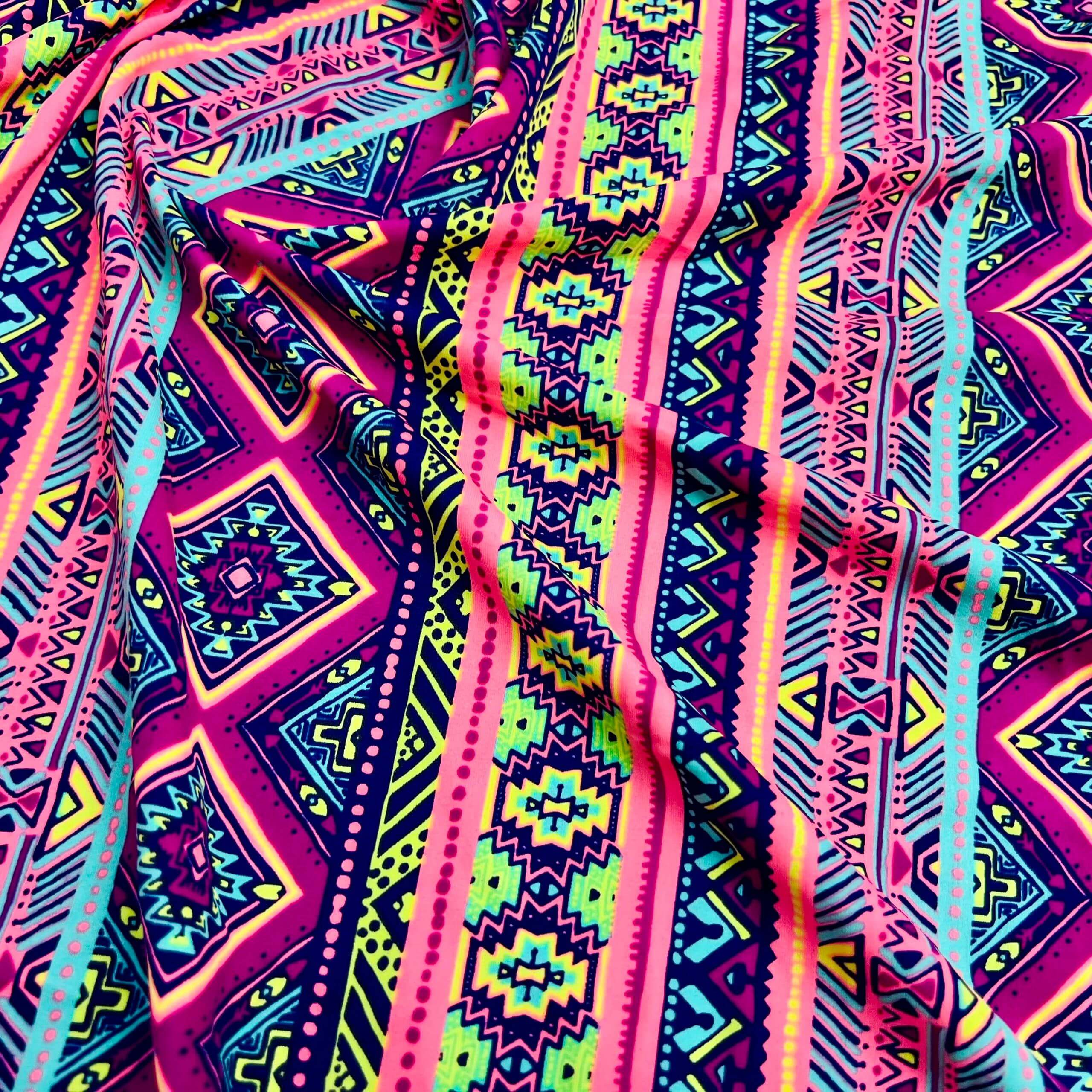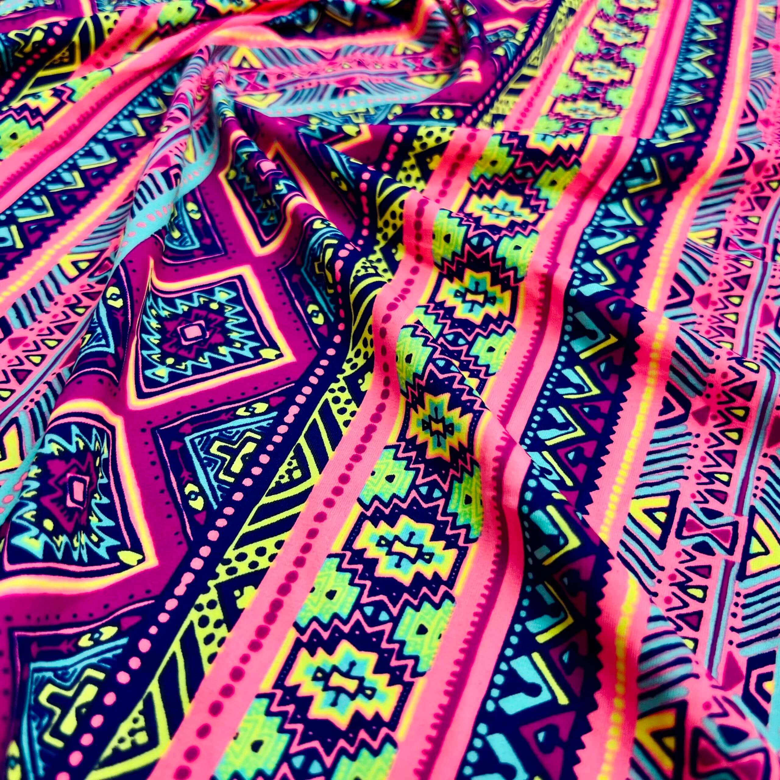 Multicolor Ethnic Print Nylon Lycra Spandex Fabric 4 Way Stretch by Yard
