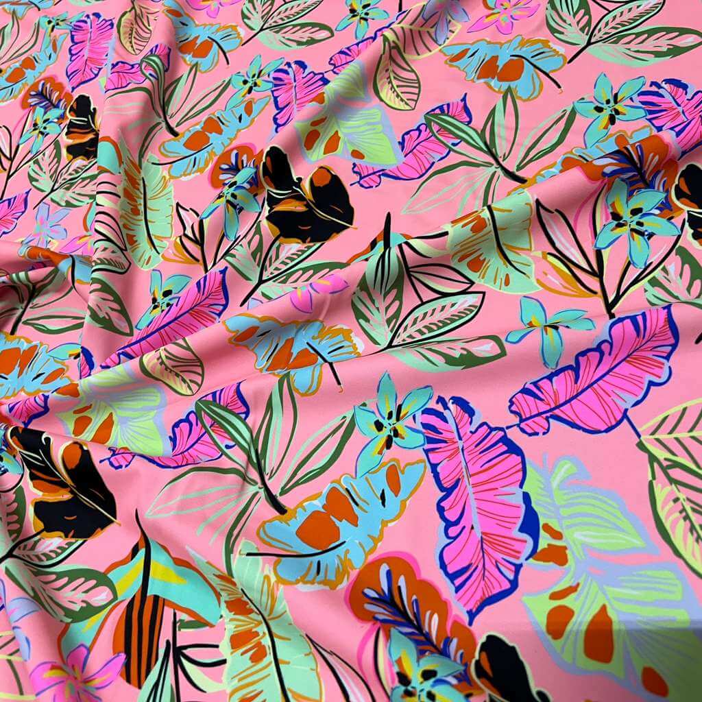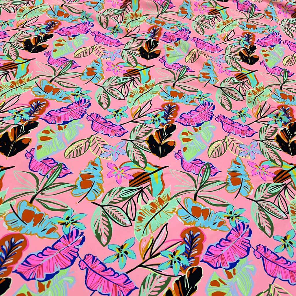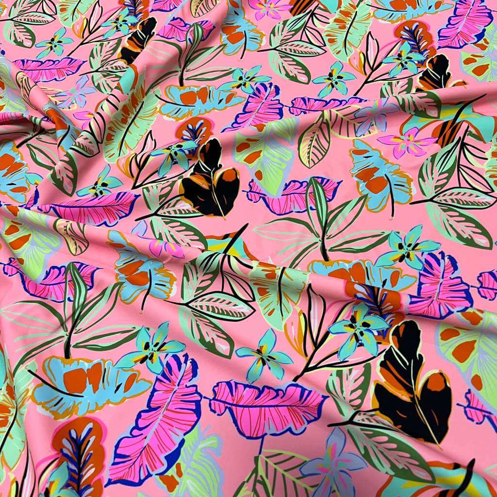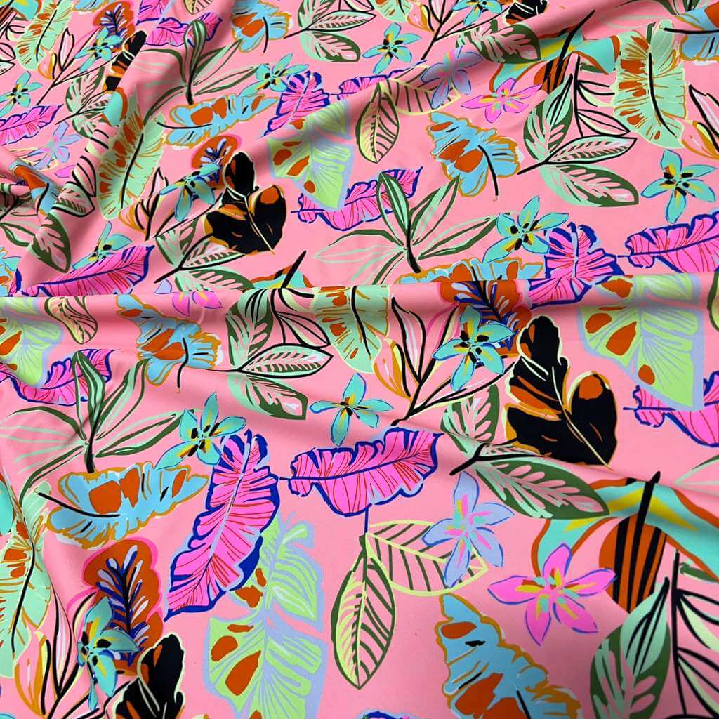 Multicolor Flowers with Pink Background print Nylon Lycra Spandex Fabric 4 Way Strech by Yard for swimwear dancewear dress gymwear (159-4)(15)