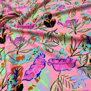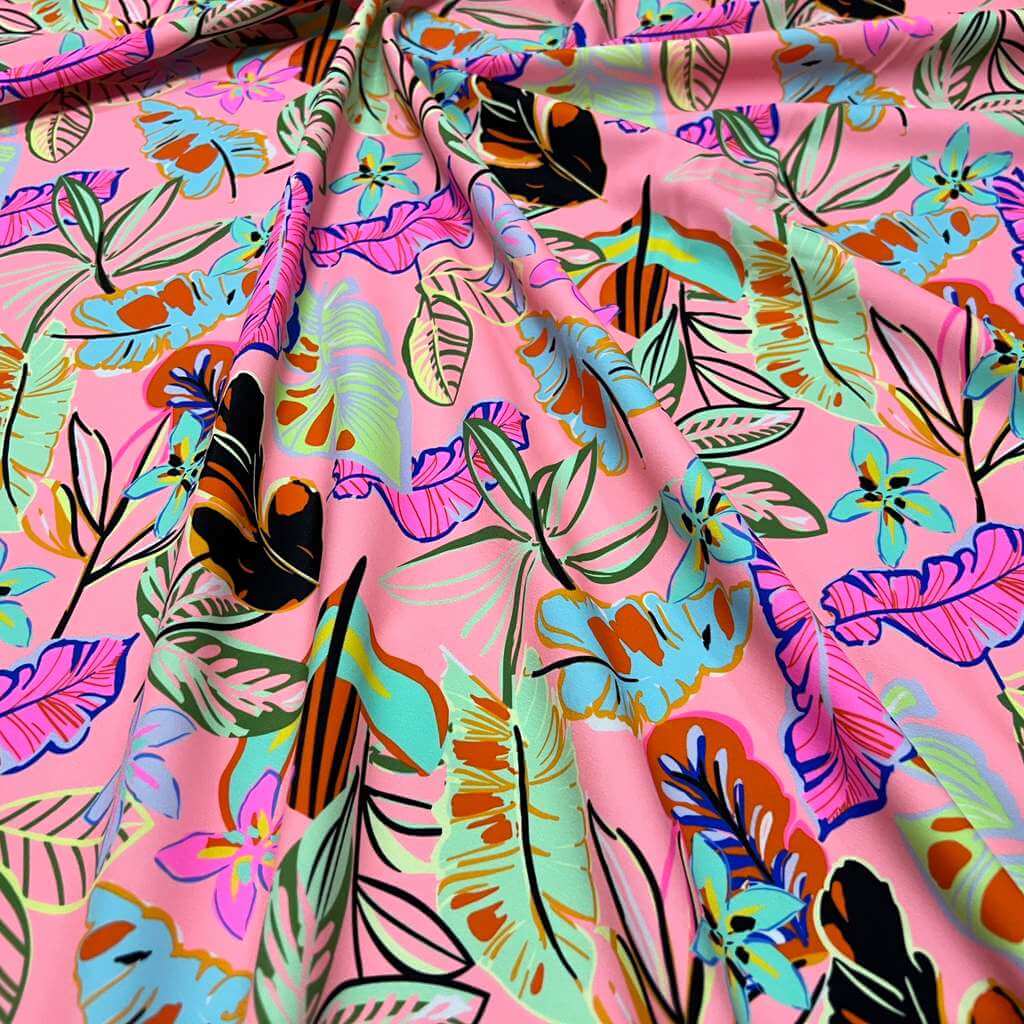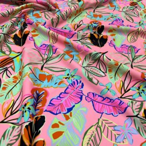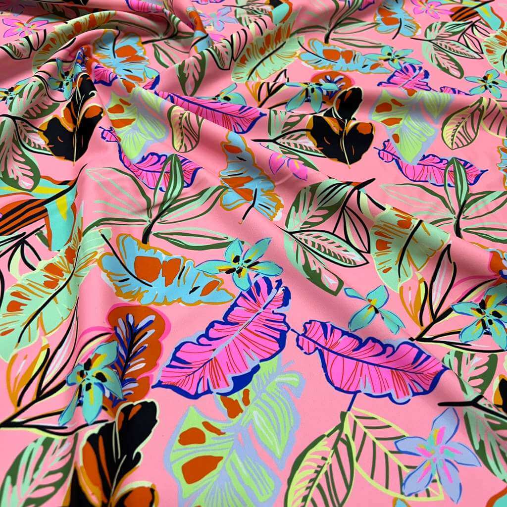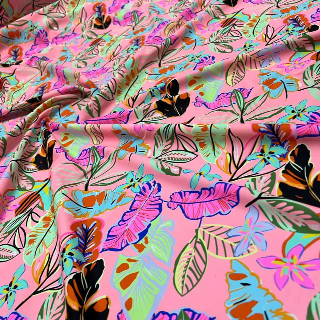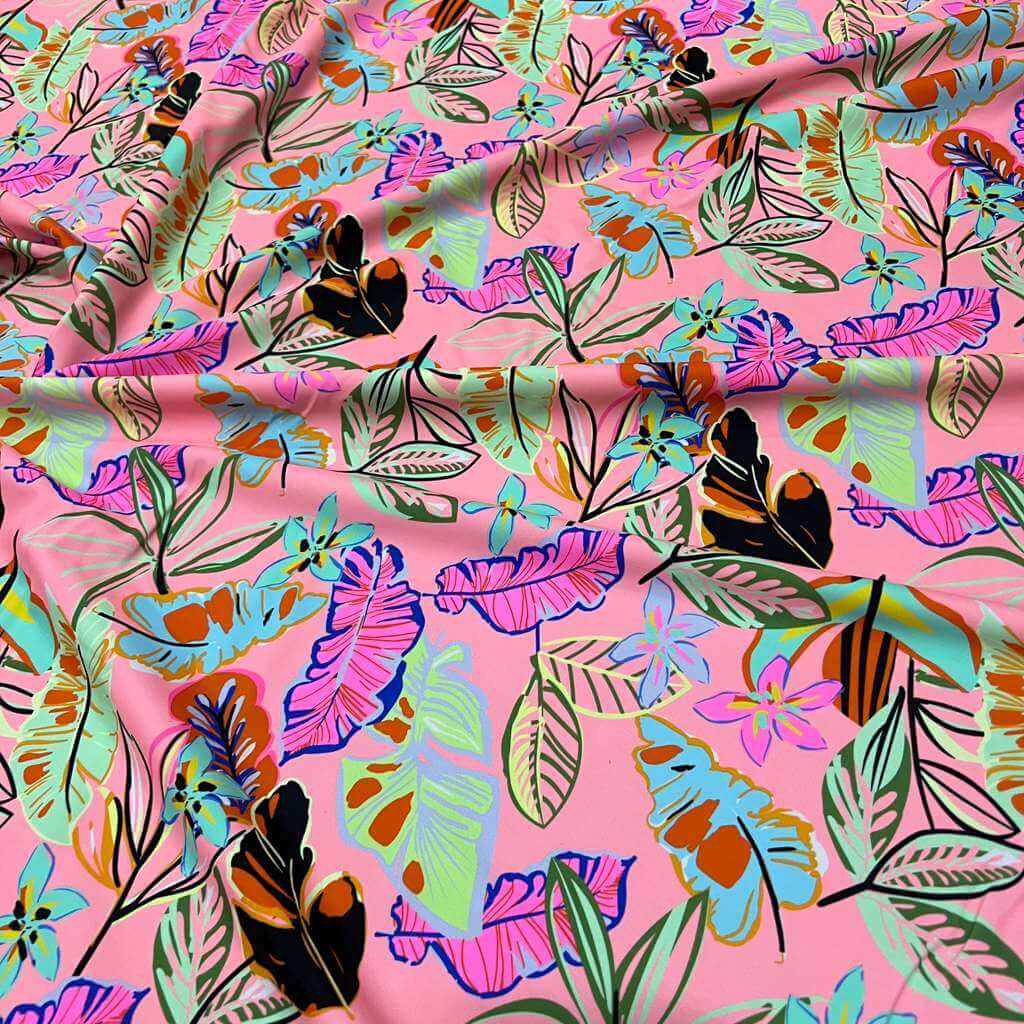 Multicolor Flowers with Pink Background print Nylon Lycra Spandex Fabric 4 Way Strech by Yard for swimwear dancewear dress gymwear (159-4)(15)