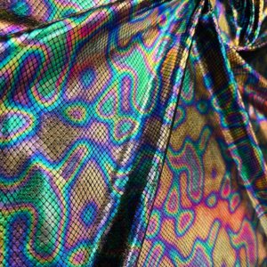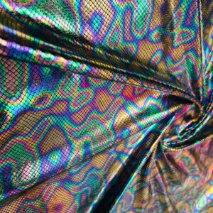 You are viewing Multicolor Litmus Pearl Hologram Metallic Stretch Foil Fabric Nylon Lycra Spandex Fabric 4 Way Stretch By Yard for swimwear dancewear sportwear dress