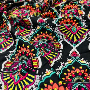 Multicolor Mandala Black background Print Nylon Spandex Fabric 4 Way Stretch for swimwear dancewear gymwear sportwear dress skirt (204-6)