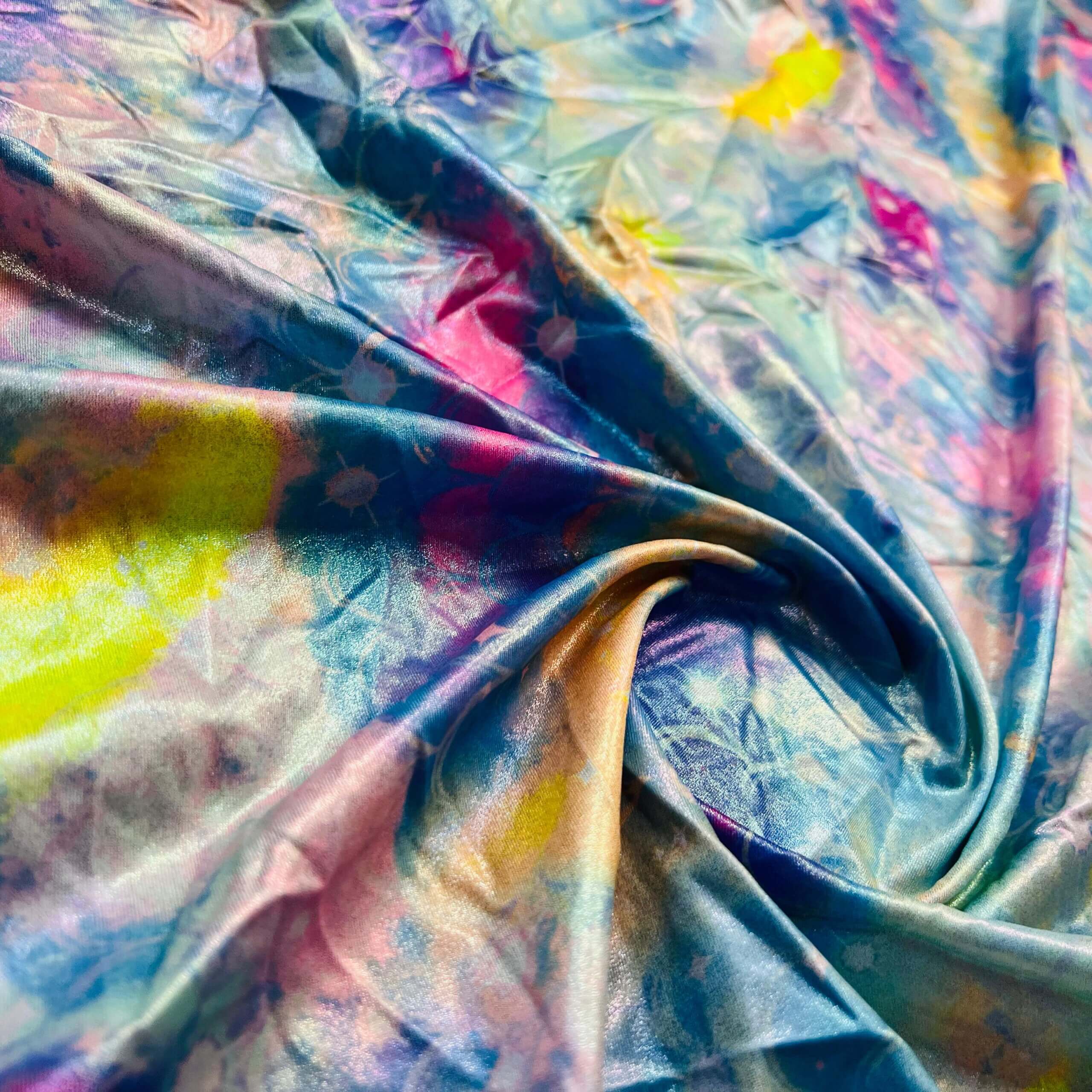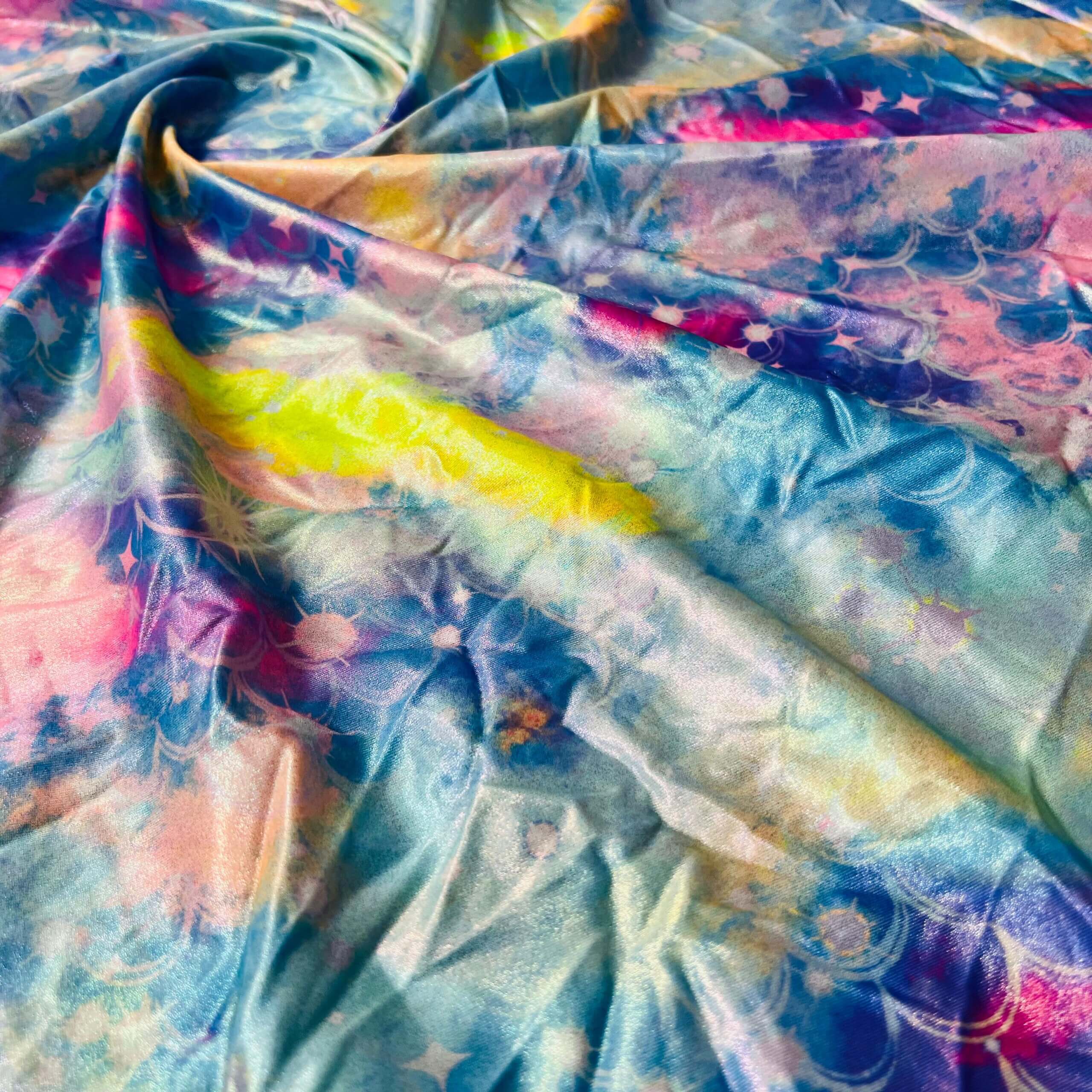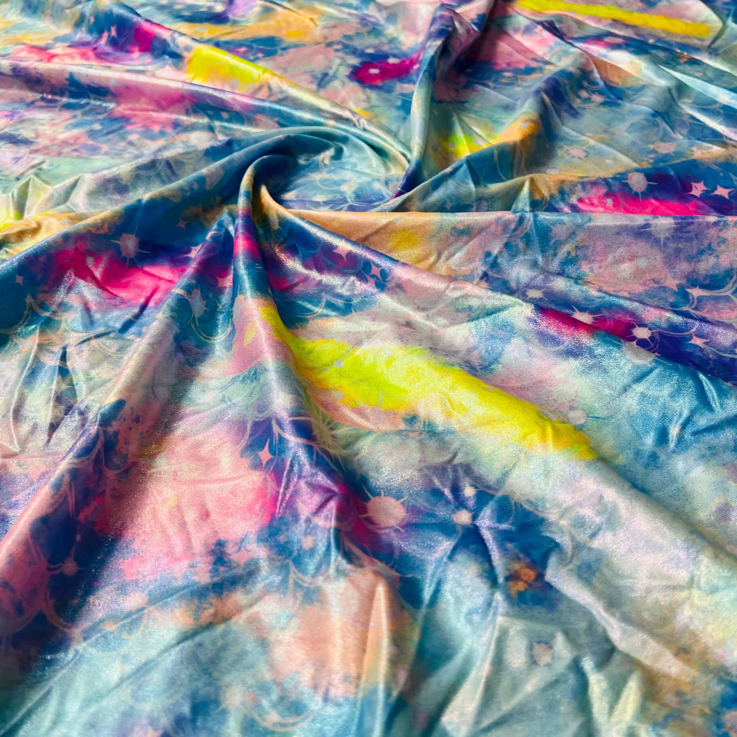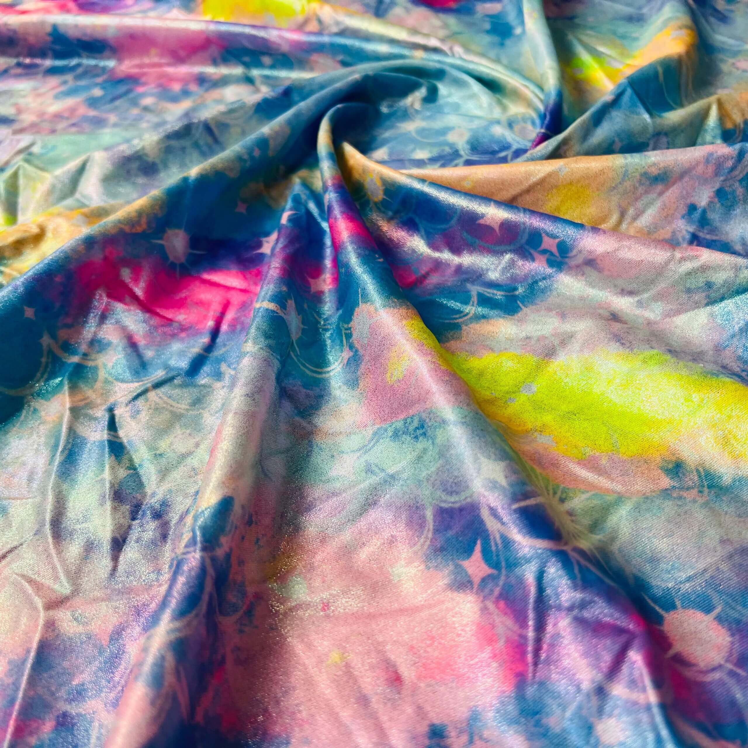 Multicolor Metallic with Stars Print Nylon Lycra Spandex Fabric 4 Way Stretch By Yard for swimwear dancewear gymwear sportwear dress (204-5)