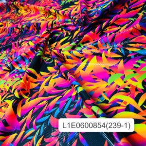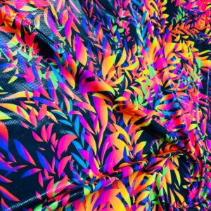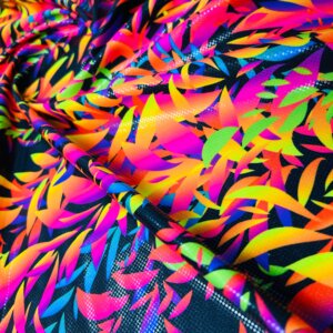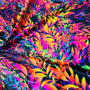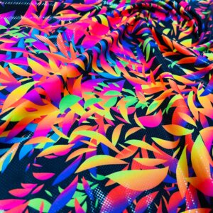 Multicolor Neon Metallic Leaves Print Nylon Lycra Spandex Fabric 4 Way Stretch By Yard