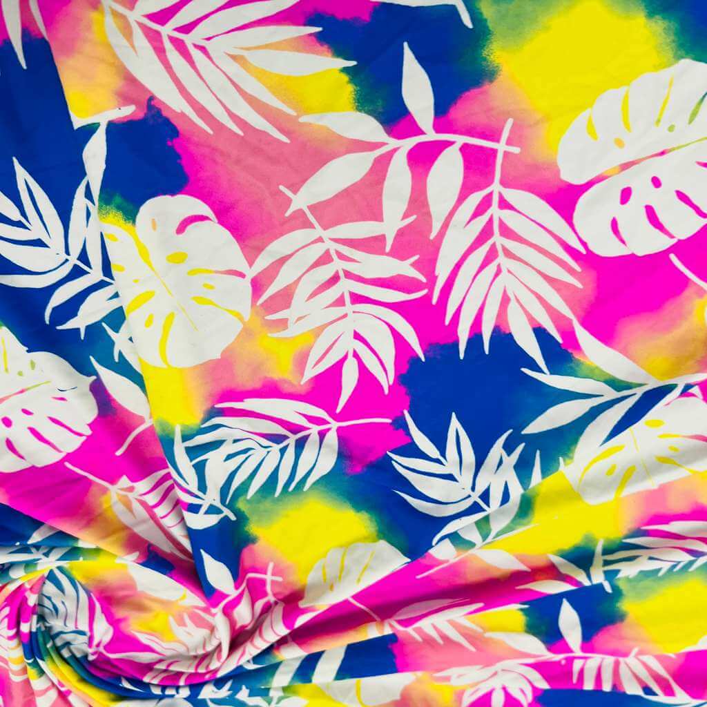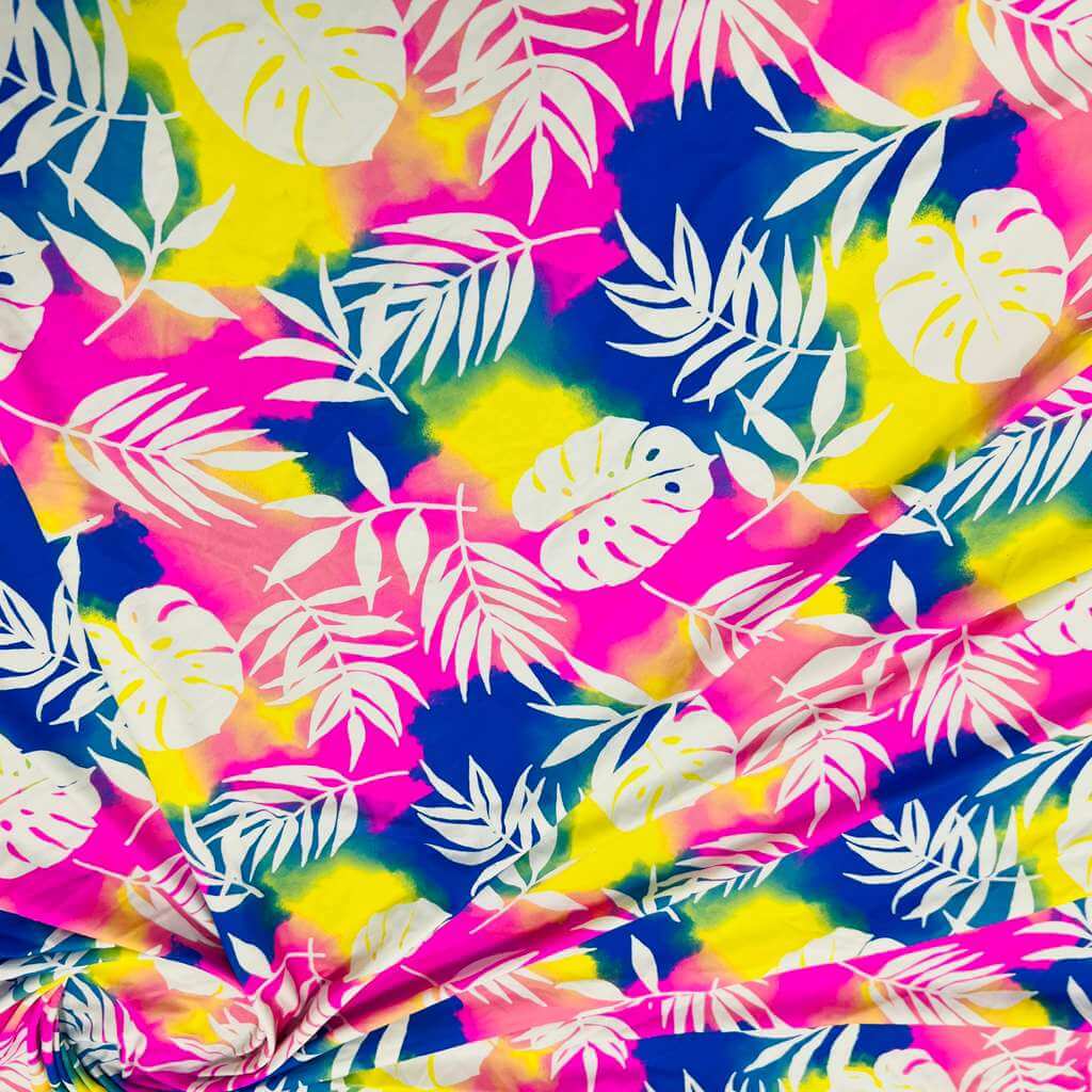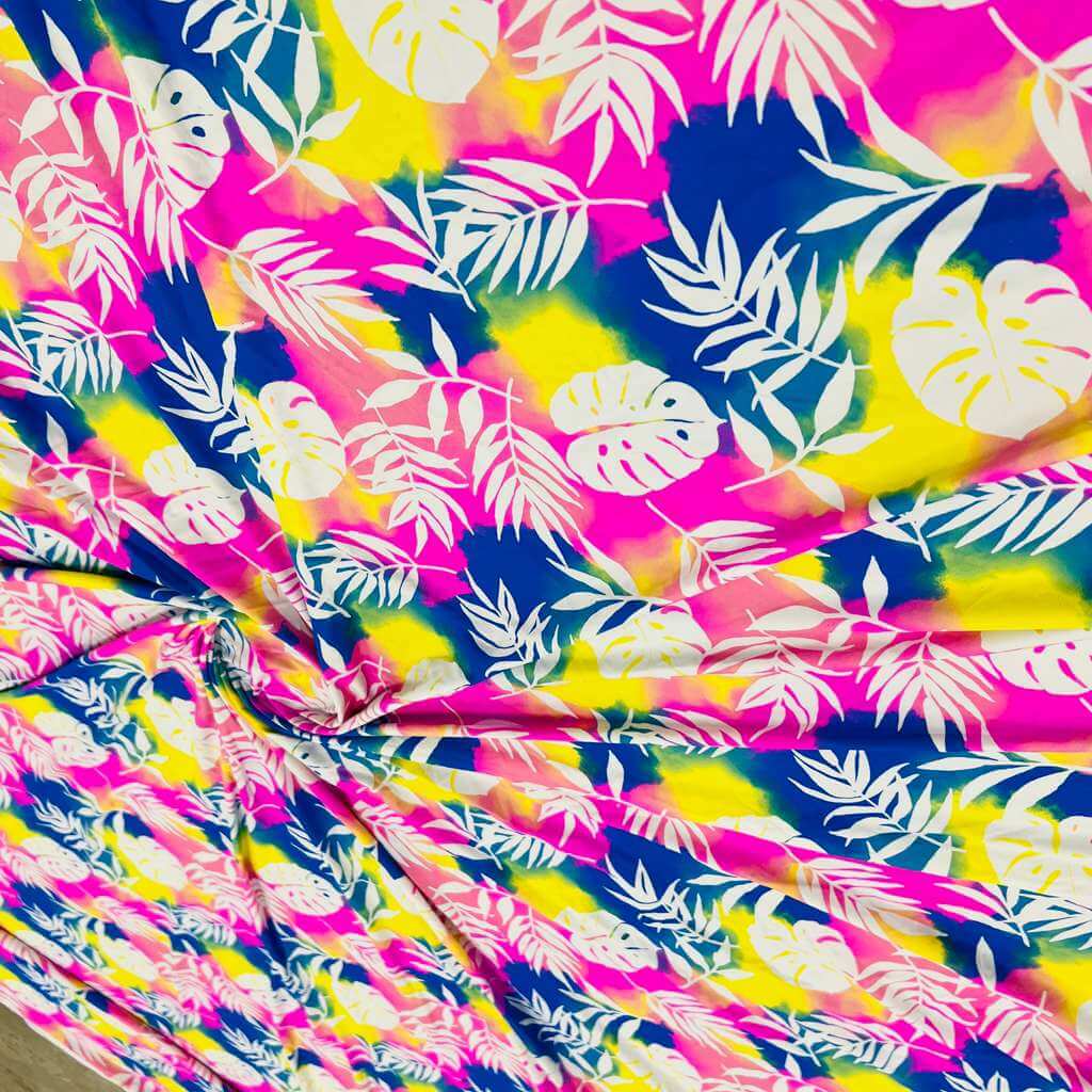 Multicolored Leaves print Nylon Lycra Spandex Fabric 4 Way Strech by Yard for swimwear dancewear dress gymwear