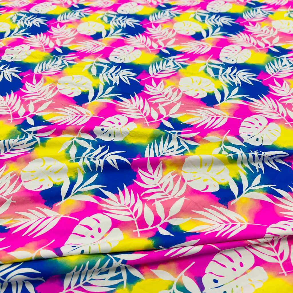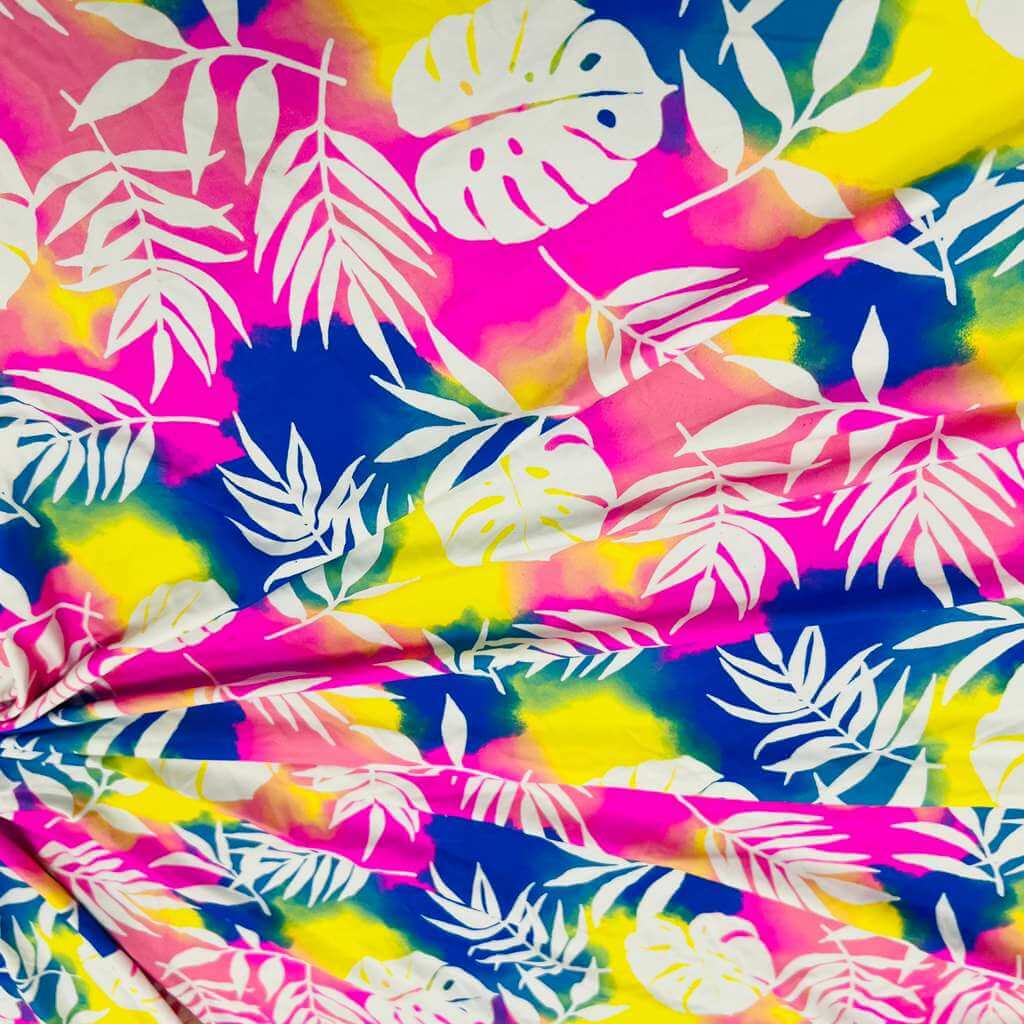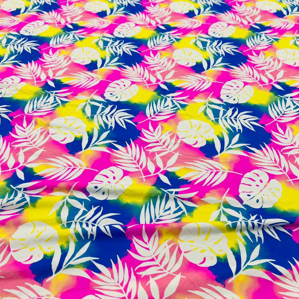 Multicolored Leaves print Nylon Lycra Spandex Fabric 4 Way Strech by Yard for swimwear dancewear dress gymwear