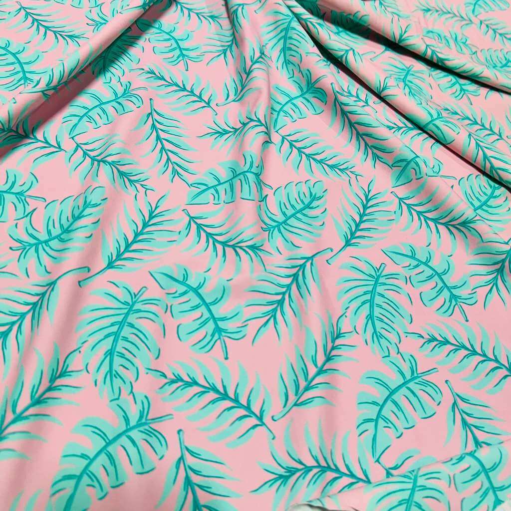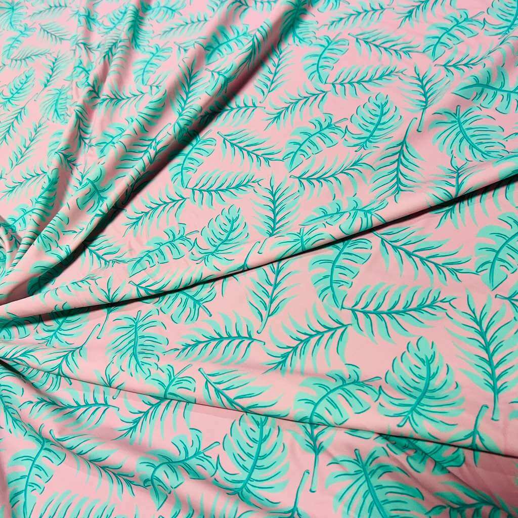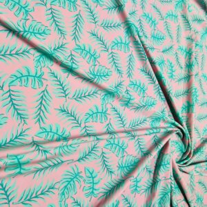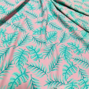 Jungle Green Leaves Print Nylon Lycra Spandex Fabric 4 Way Strech by Yard for swimwear dancewear dress gymwear (159) (40)