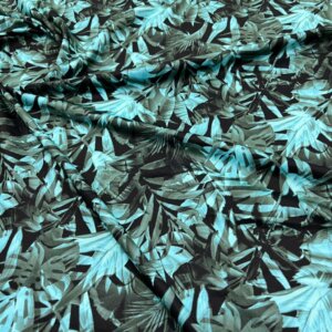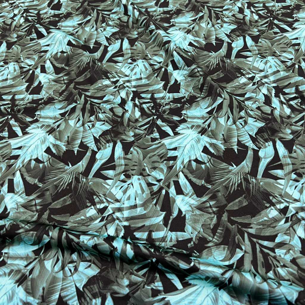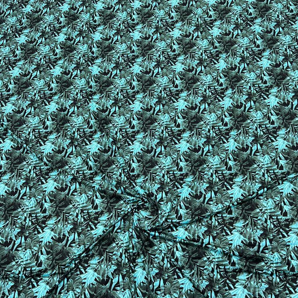 Neon Blue Leaves & Palms Print Nylon Lycra Spandex Fabric 4 Way Strech by Yard for swimwear dancewear dress gymwear (204-9) (32)