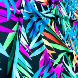 Neon Colored Leaves Print Nylon Lycra Spandex fabric four way Stretch by Yard for swimwear dancewear dress gymwear (205-5)