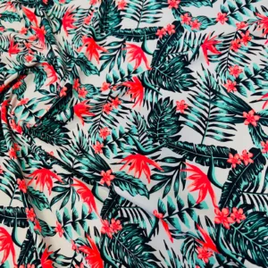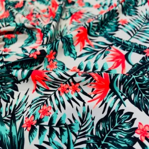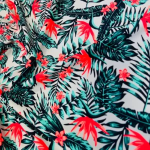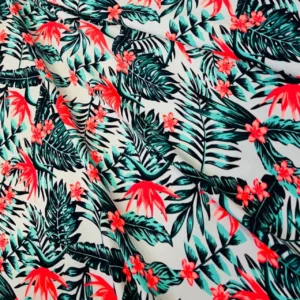 Neon Coral Flowers Print Nylon Lycra Spandex Fabric 4 Way Stretch by roll for Swimwear, Dancewear, Sportwear, Dress
