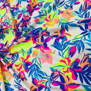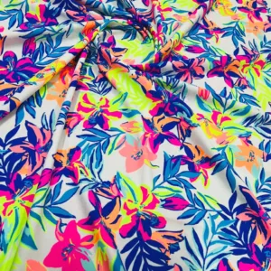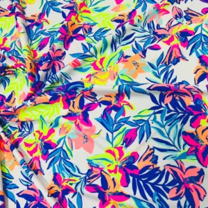 Flowers neon Print Nylon Lycra Spandex Fabric 4 Way Strech by Yard for swimwear dancewear dress gymwear