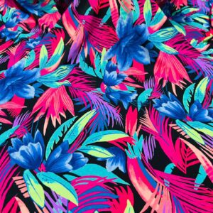 Neon Flowers Print Nylon Lycra Spandex Fabric 4 Way Strech by Yard for swimwear dancewear dress gymwear (279-10)