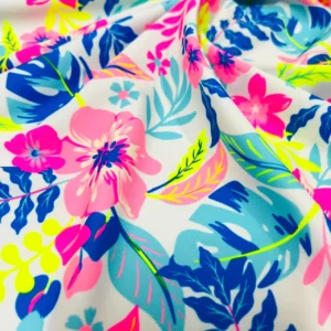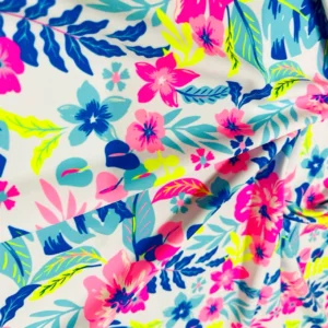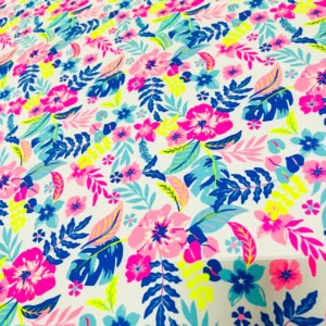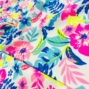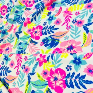 Neon Flowers Print Nylon Lycra Spandex Fabric 4 Way Stretch by Yard for Swimwear, Dancewear, Sportwear, Dress (203-11)
