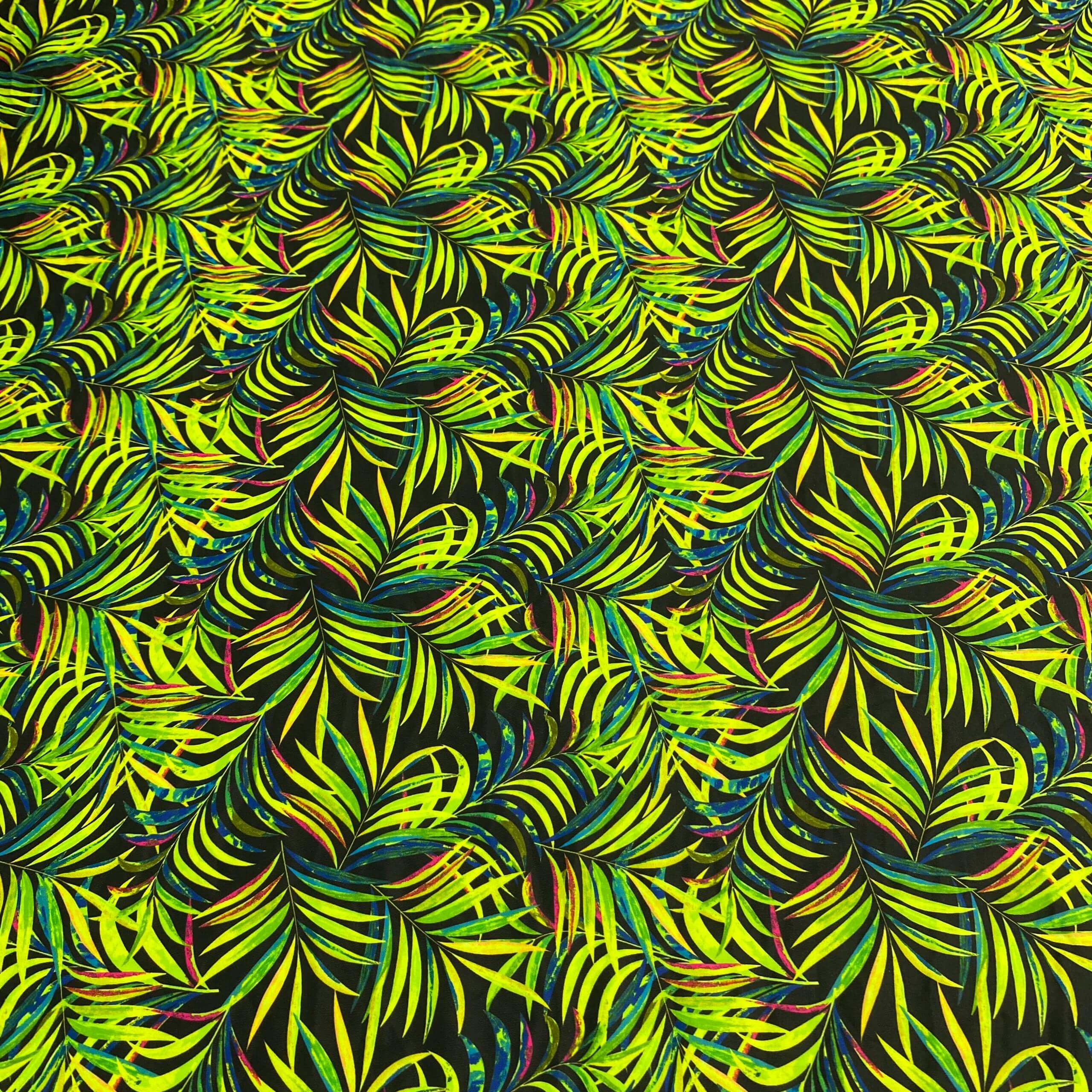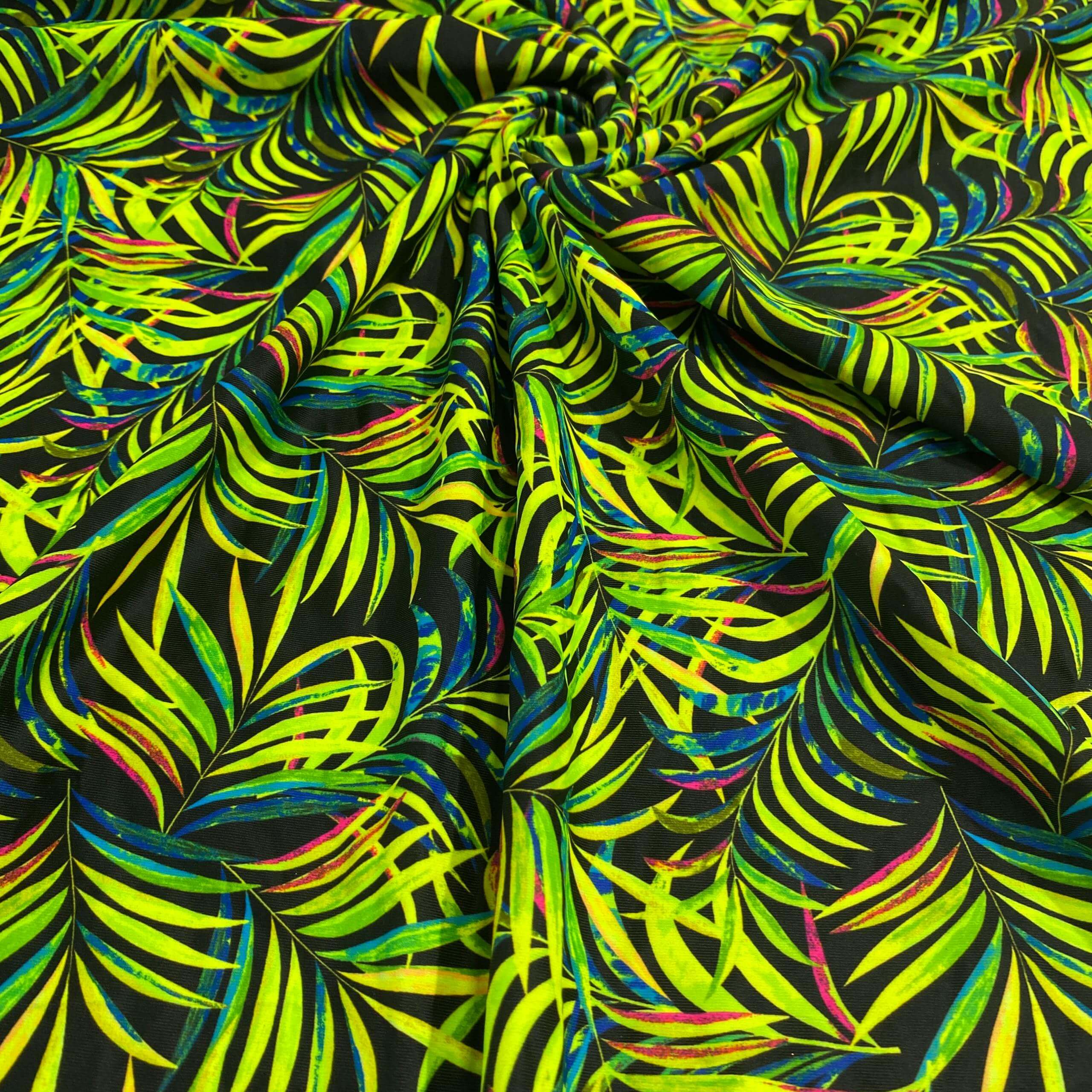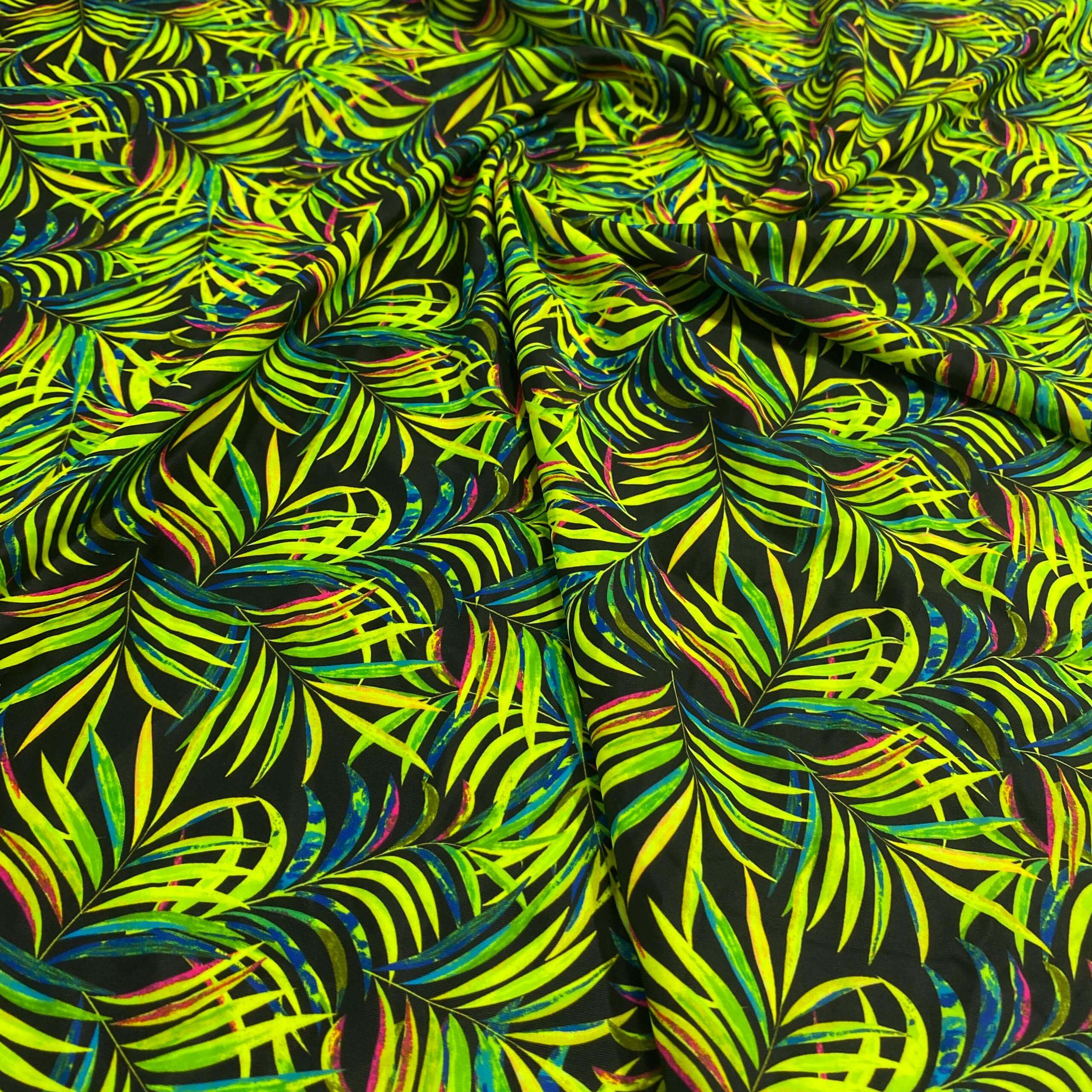 Neon Green Leaves Print Nylon Lycra Spandex Fabric 4 Way Stretch By Yard for swimwear dancewear gymwear sportwear dress (243-8)