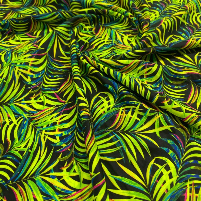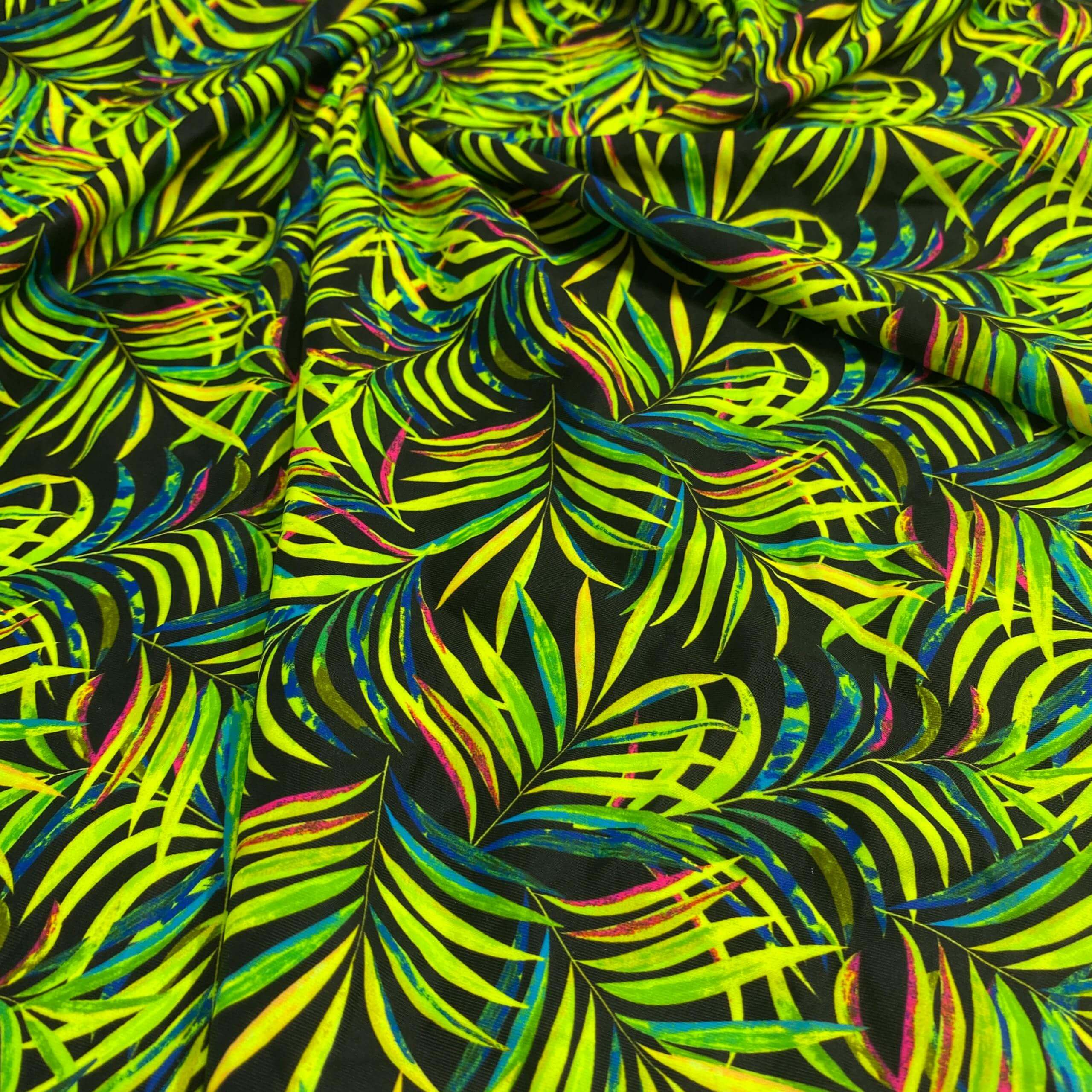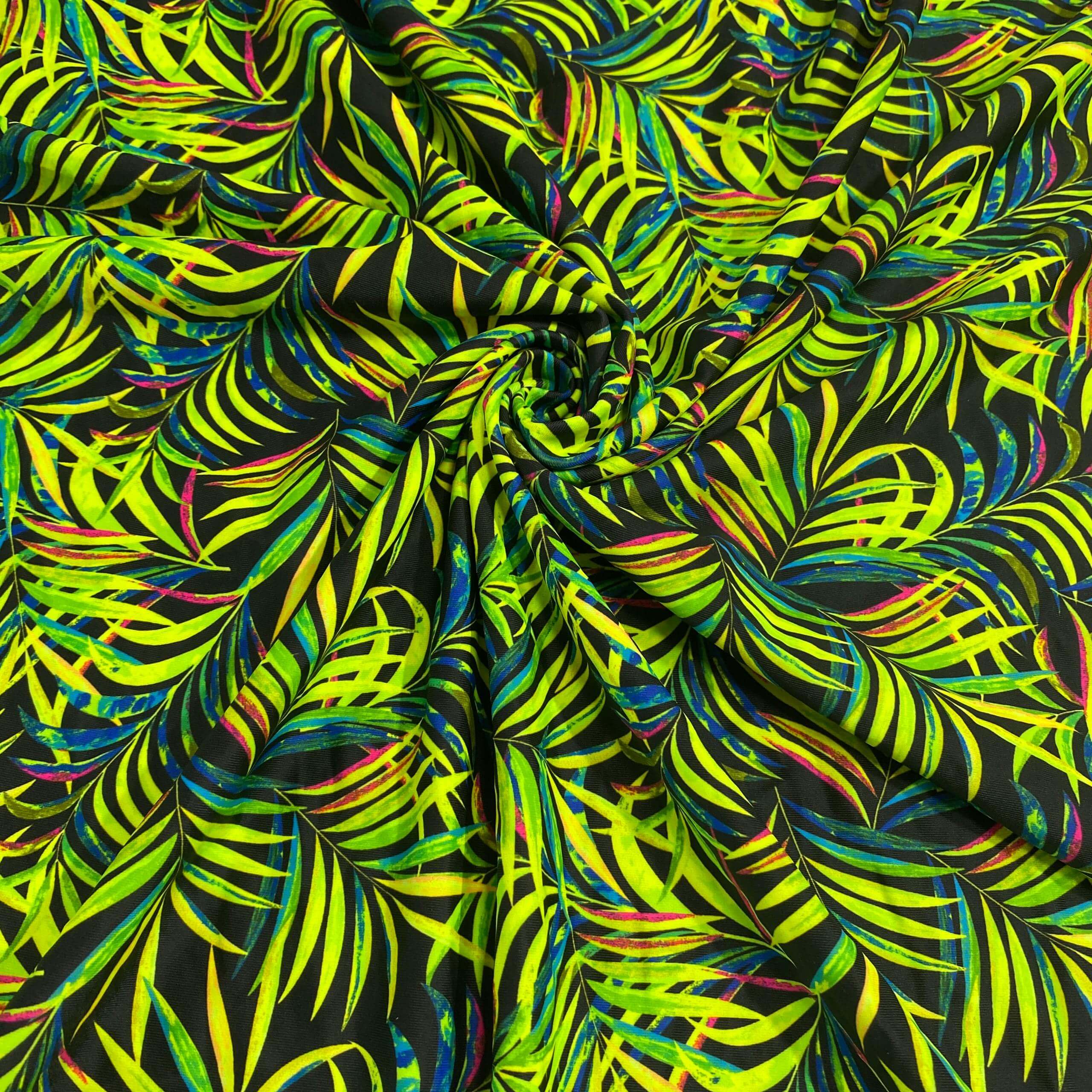 Neon Green Leaves Print Nylon Lycra Spandex Fabric 4 Way Stretch By Yard for swimwear dancewear gymwear sportwear dress (243-8)