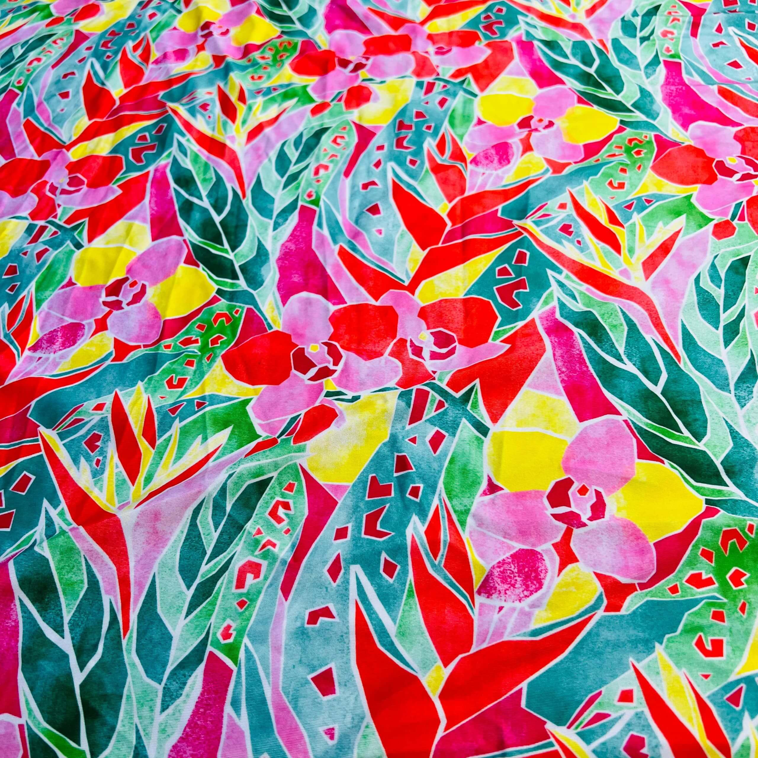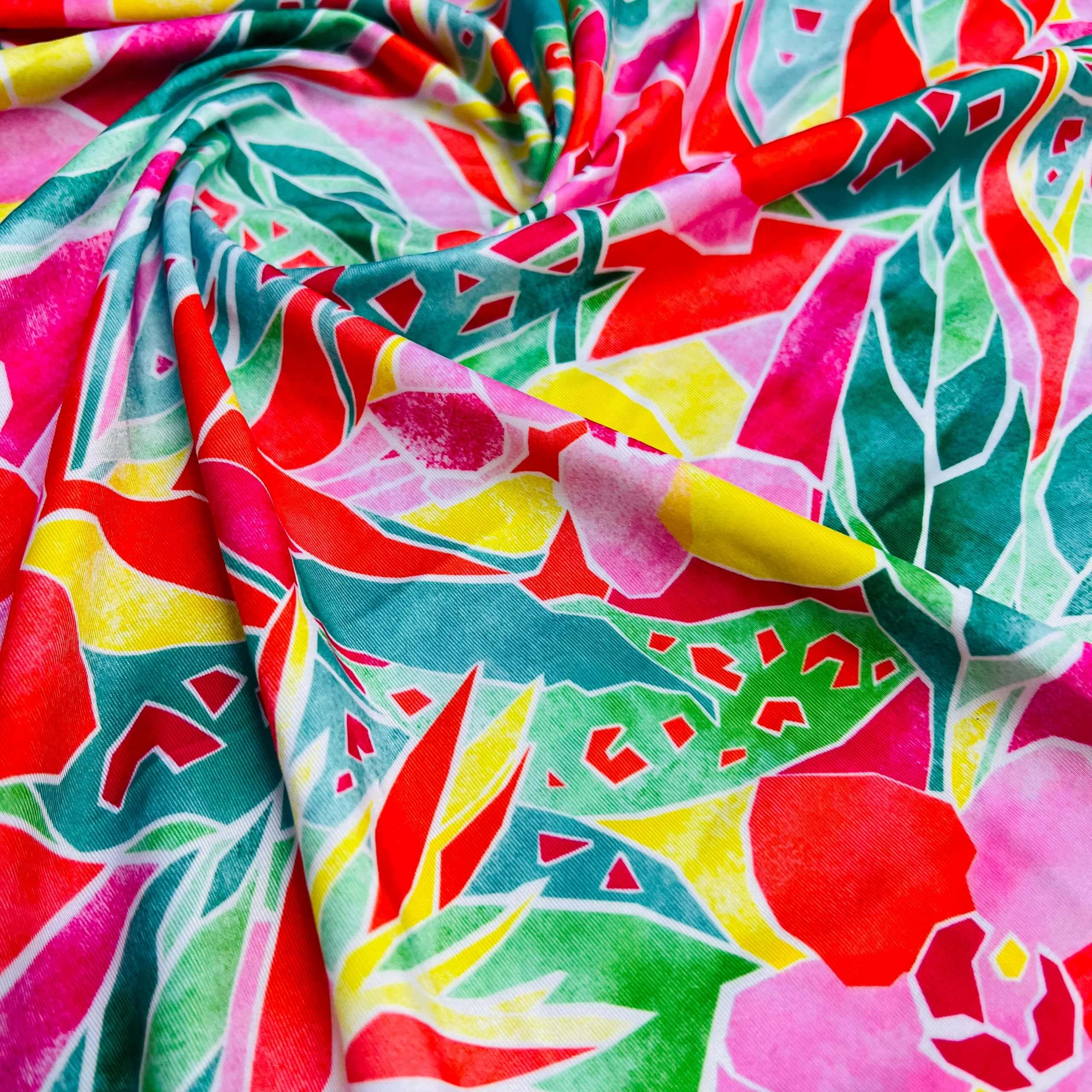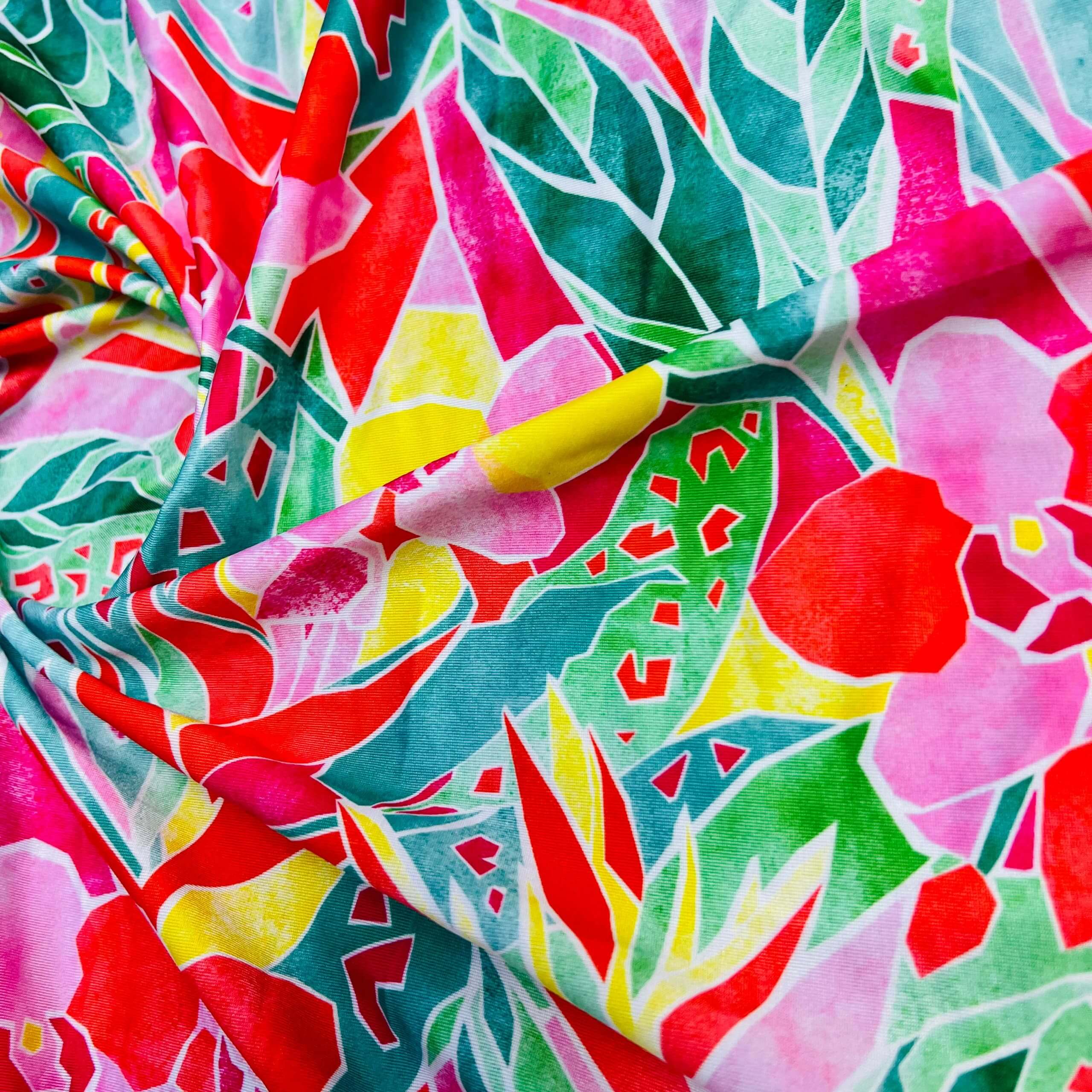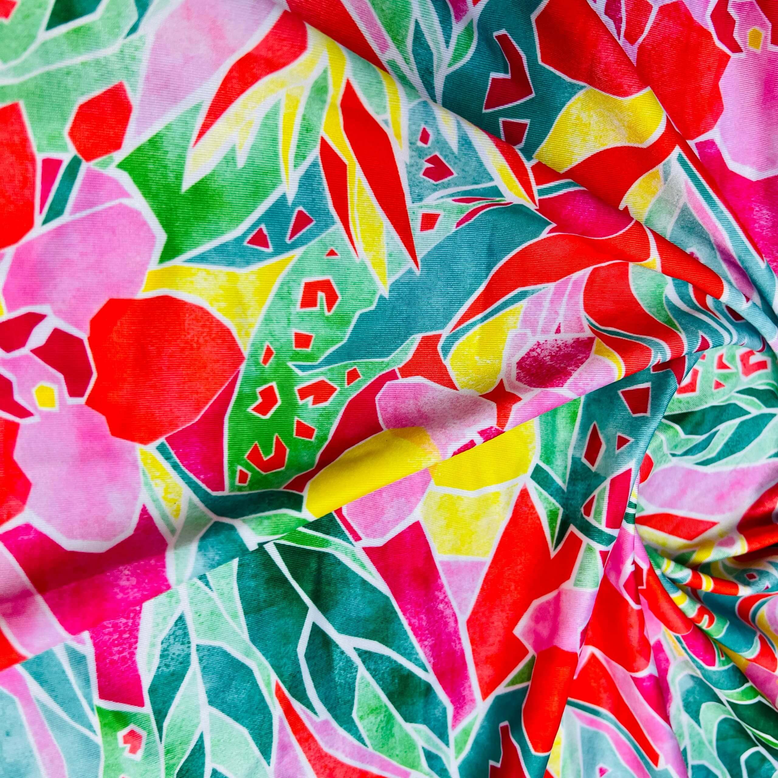 67″ Long Neon Leaves Print Nylon Lycra Spandex Fabric 4 Way Stretch for swimwear dancewear gymwear sportwear dress (203-4)