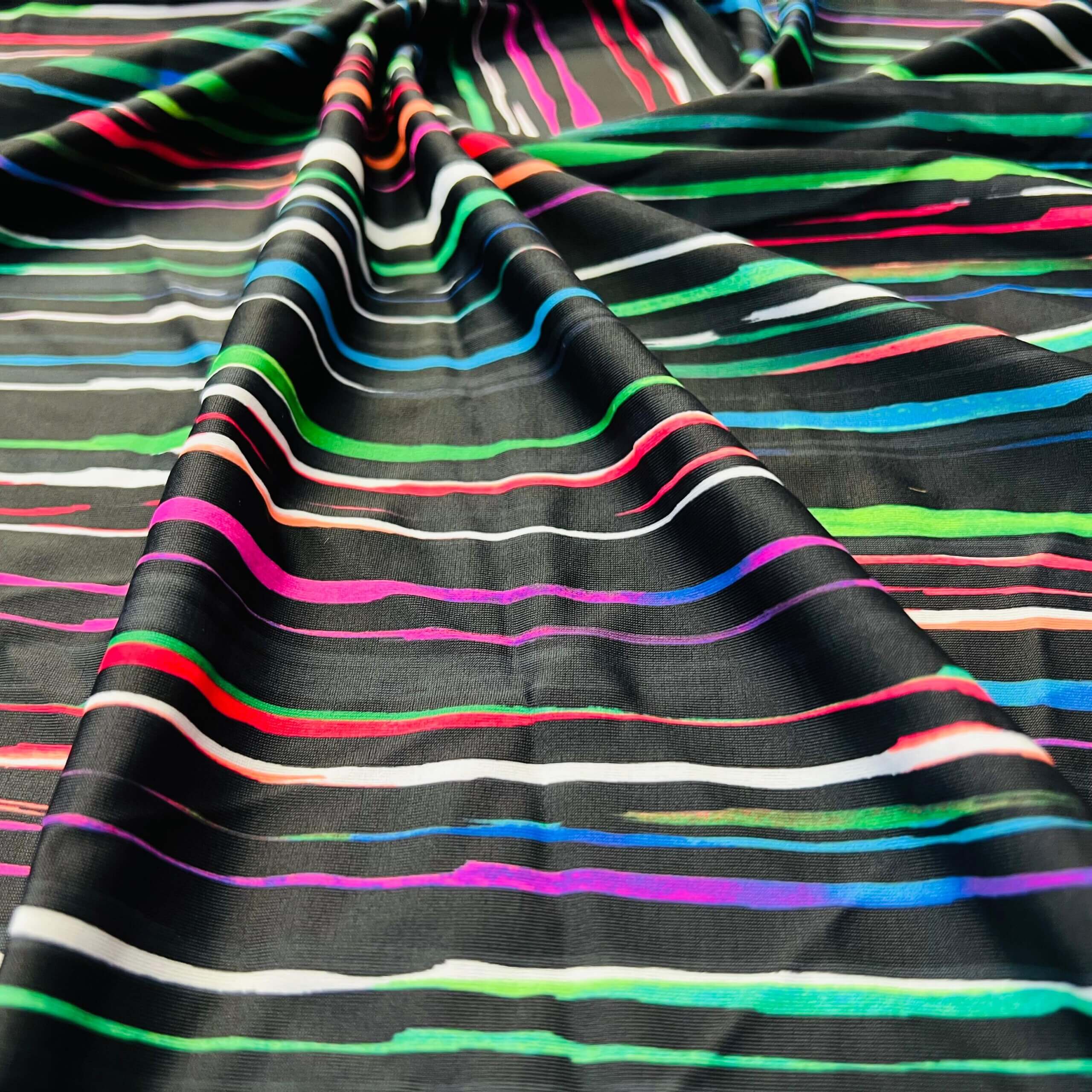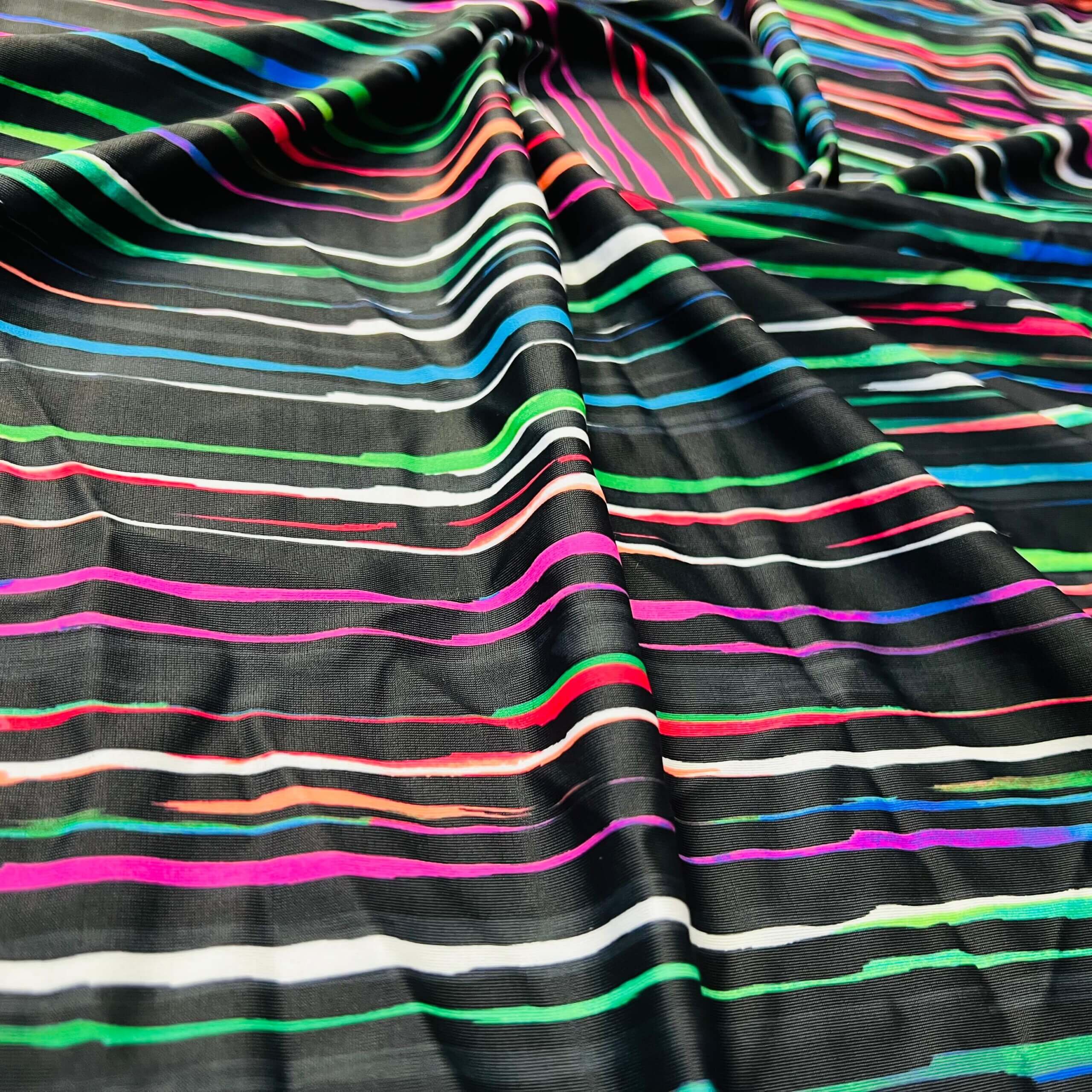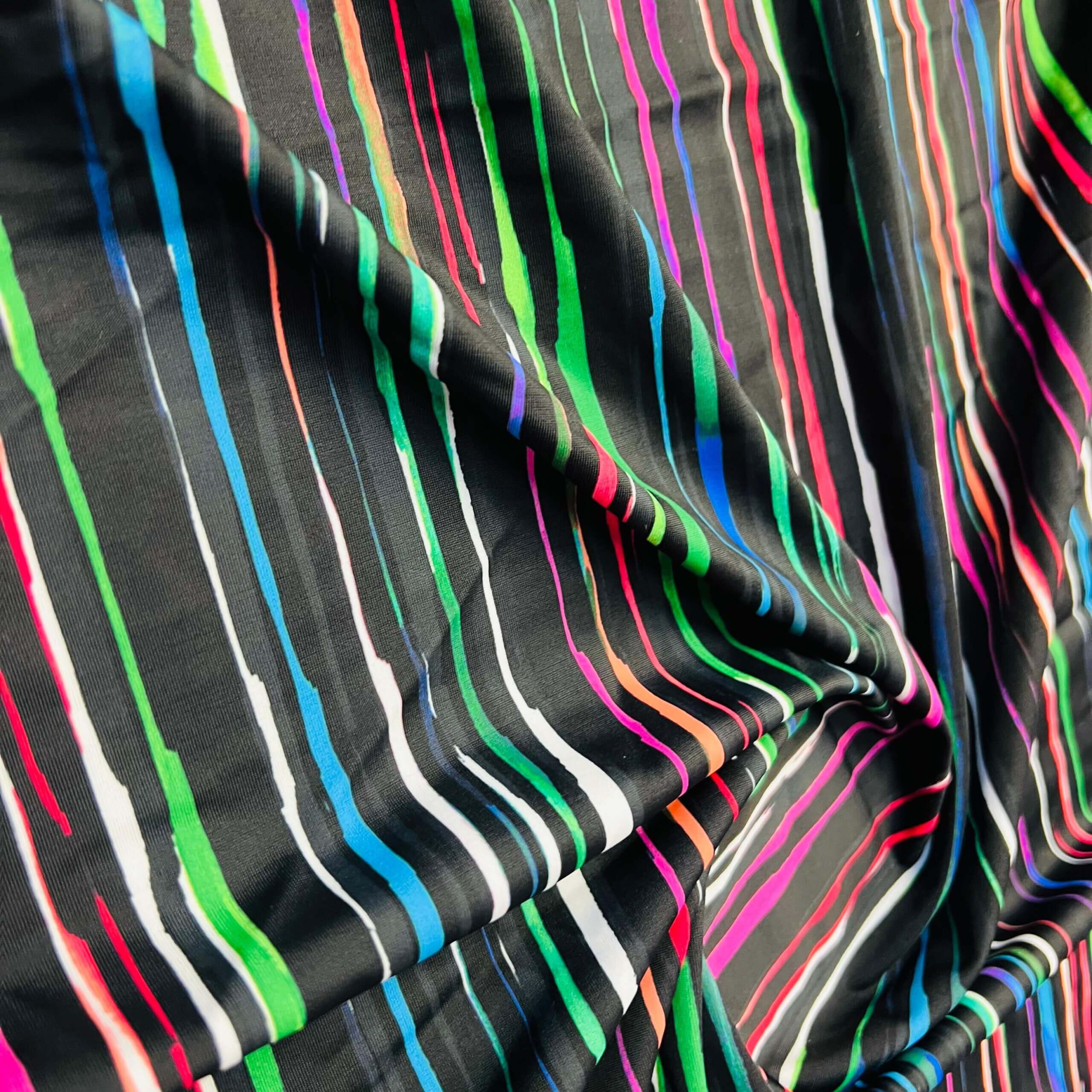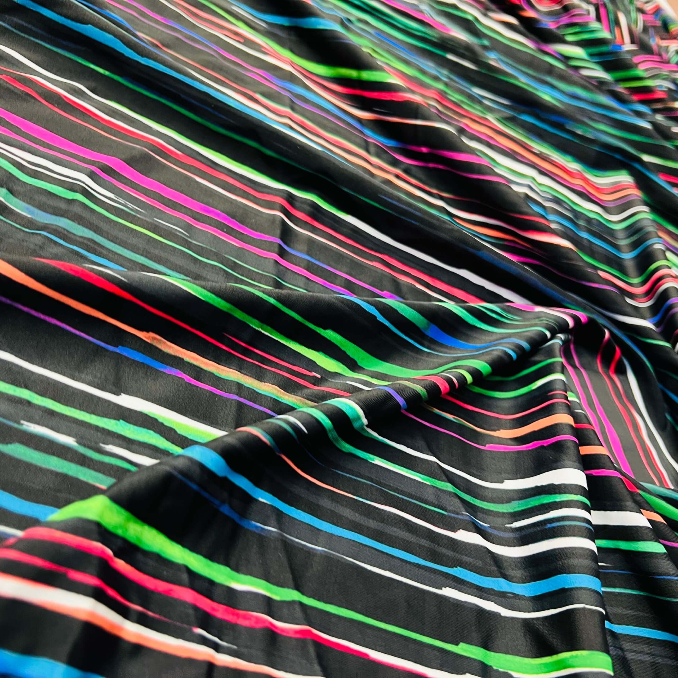 Neon Multicolor Stripes Black Background Print Nylon Lycra Spandex Fabric 4 Way Stretch By Yard for swimwear dancewear gymwear sportwear dress