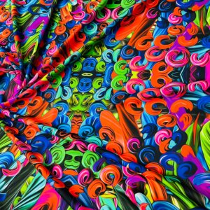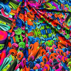 Neon Multicolor Waves Print Nylon Lycra Spandex Fabric 4 Way Stretch By Yard for swimwear dancewear gymwear sportwear dress (203-8)