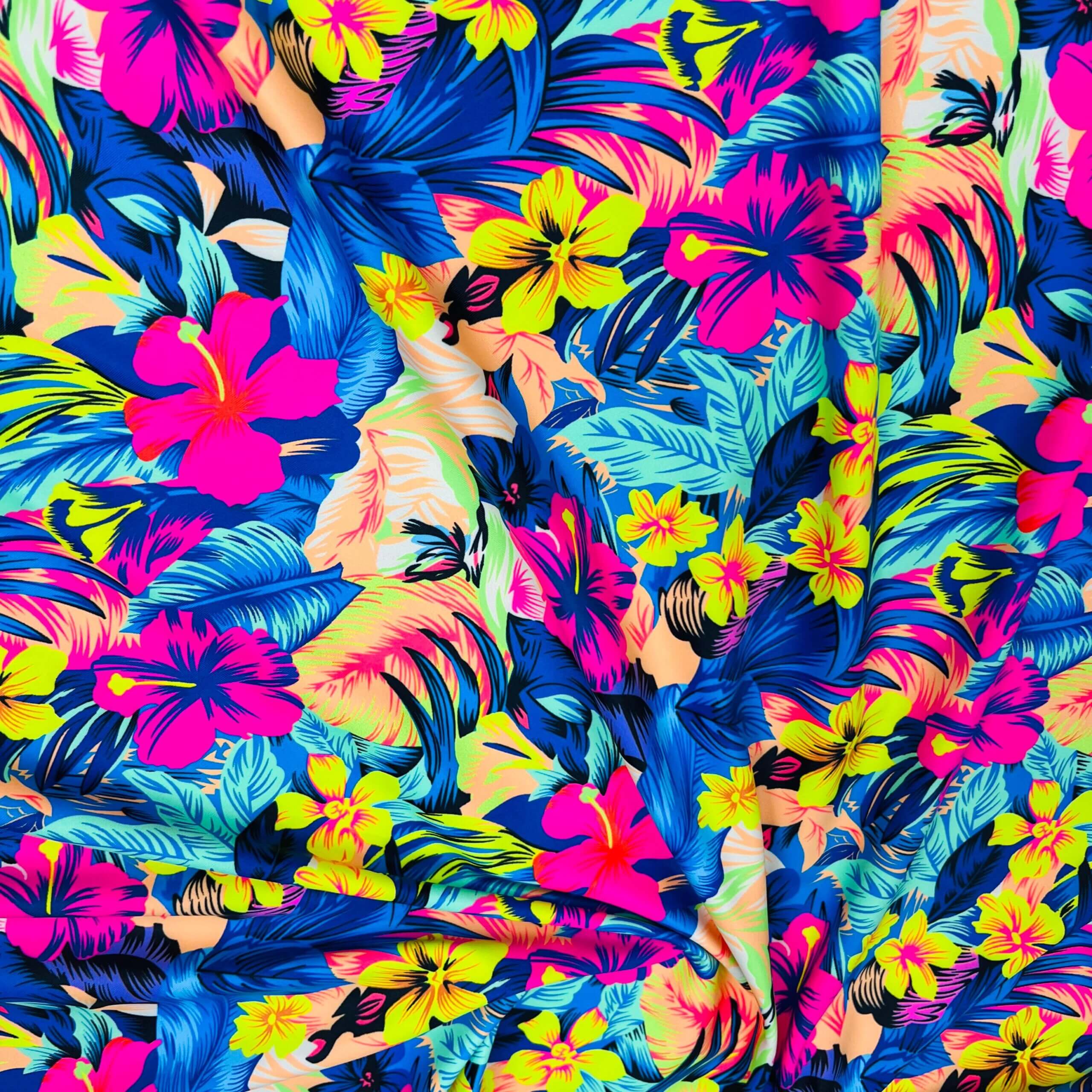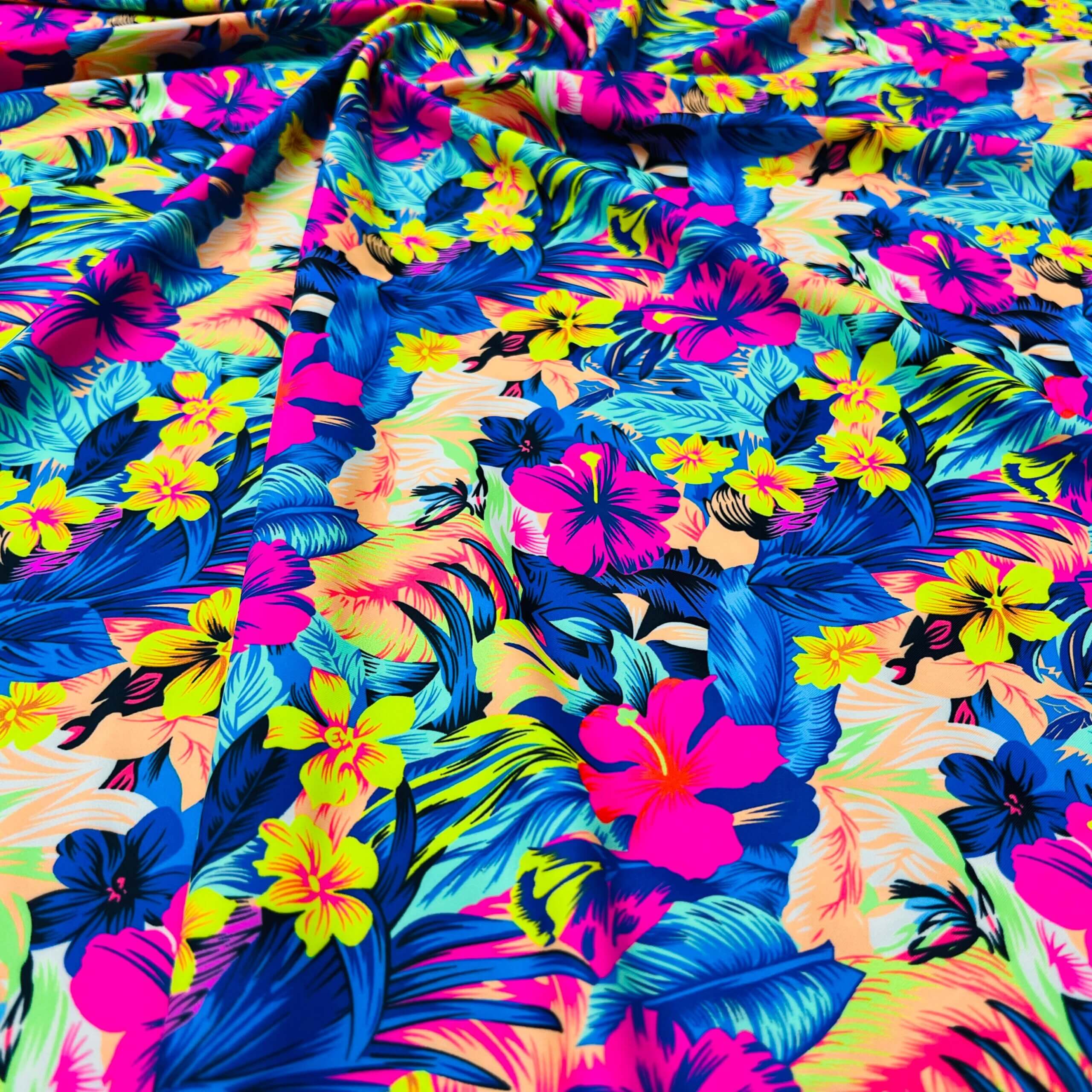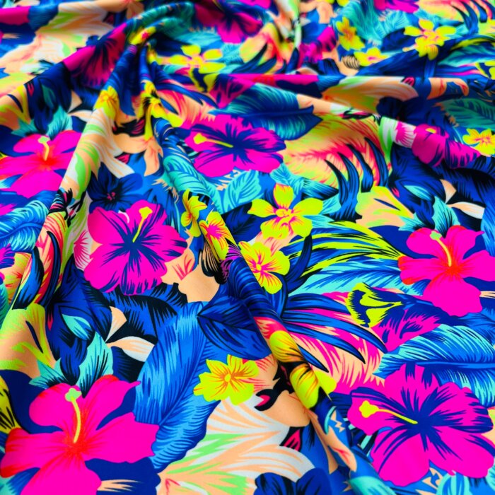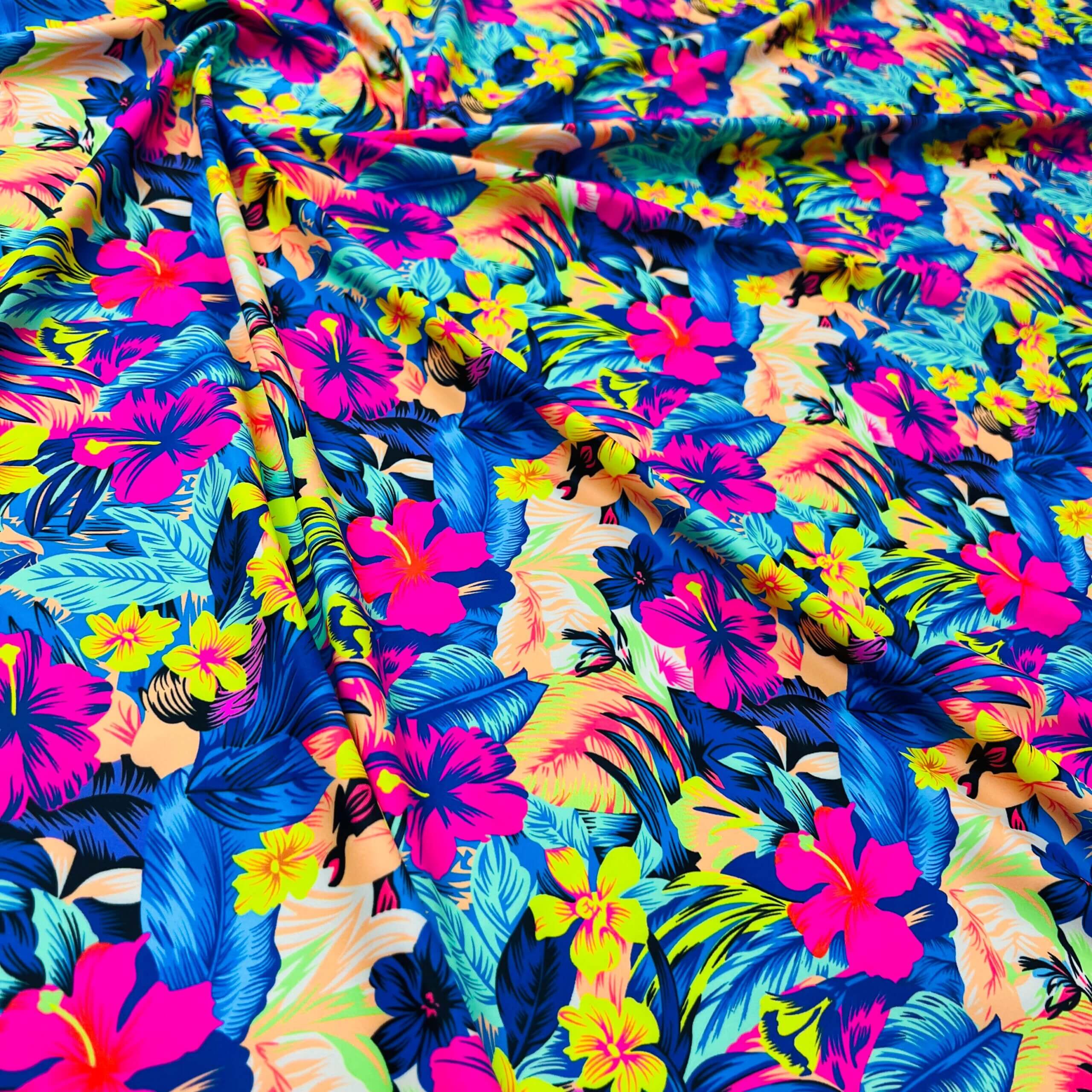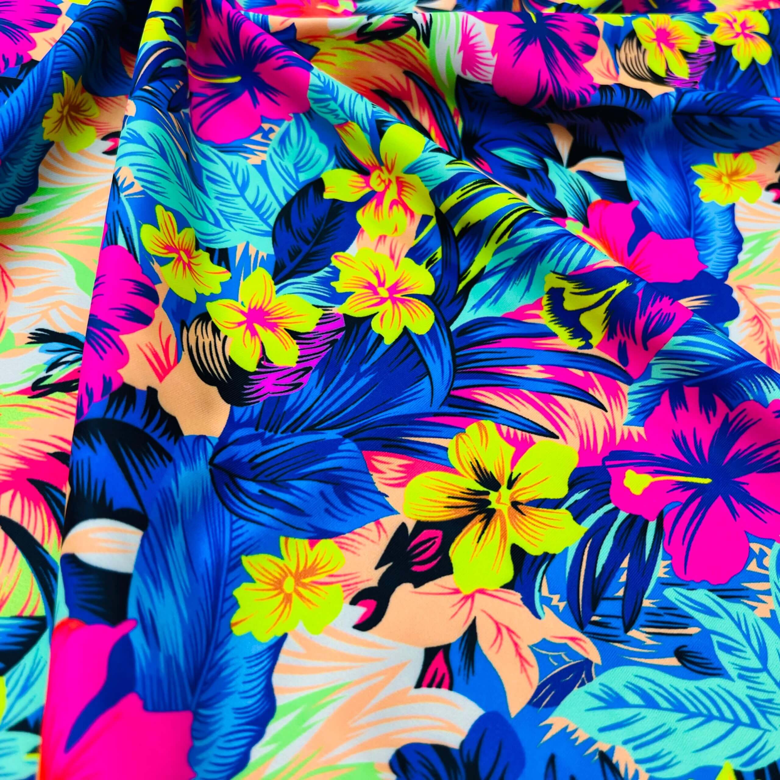 Neon Tropical Flowers Print Nylon Lycra Spandex Fabric 4 Way Stretch By Yard for swimwear dancewear gymwear sportwear dress (205-12)