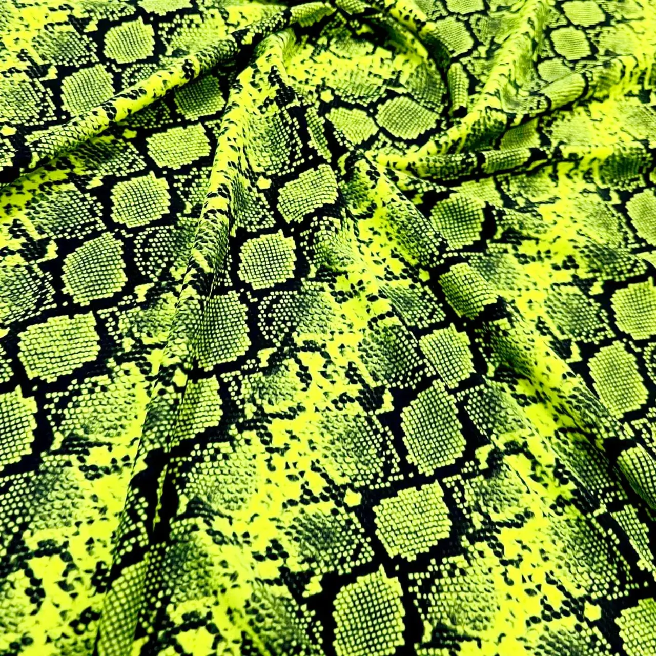 You are viewing Neon Yellow Snake Animal Print Nylon Spandex Fabric 4 Way Stretch By Yard for swimwear dancewear gymwear sportwear