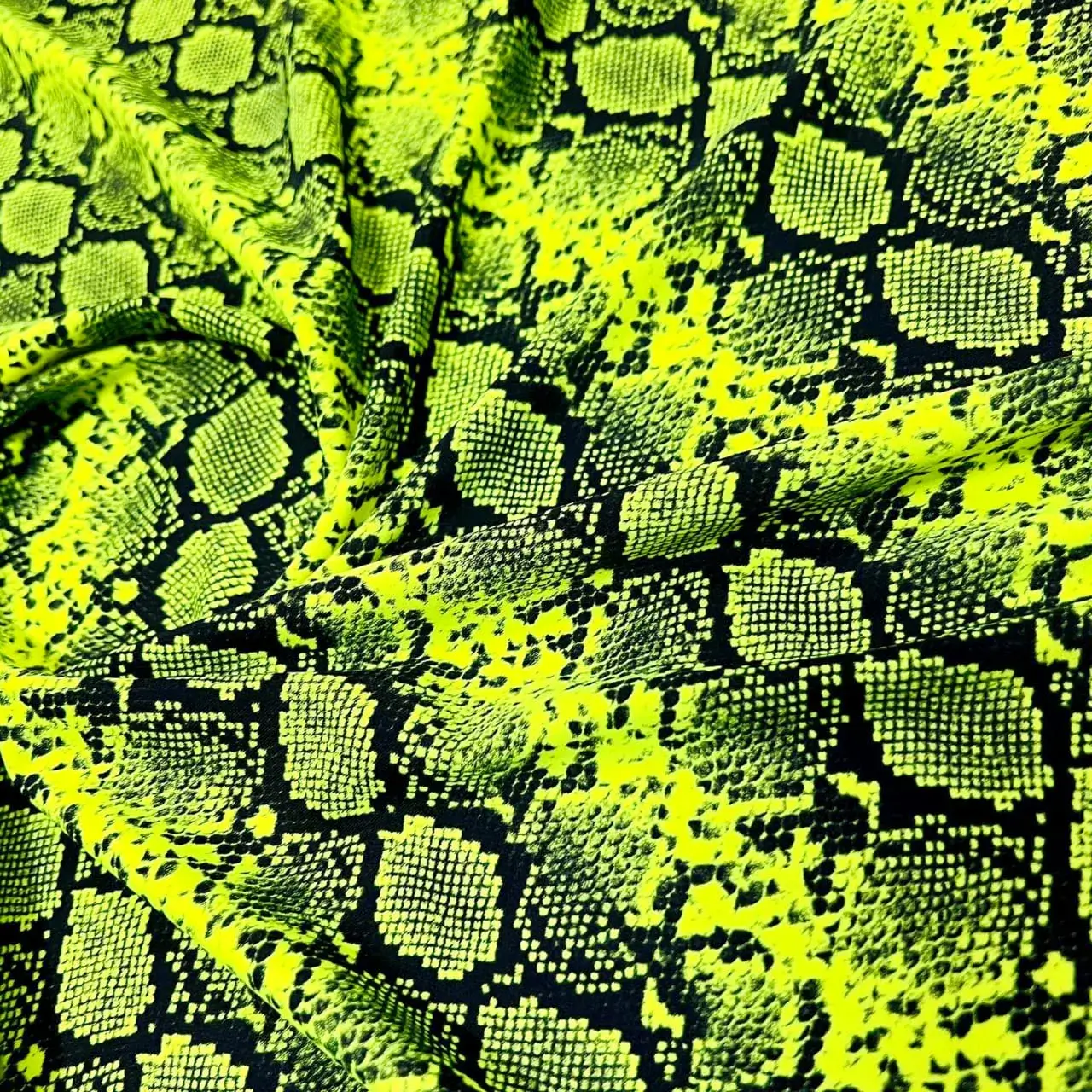 Neon Yellow Snake Animal Print Nylon Spandex Fabric 4 Way Stretch By Yard for swimwear dancewear gymwear sportwear (203-10)