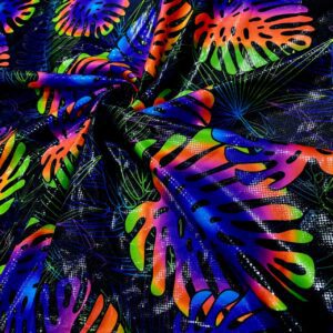 No-Stretch Multicolor Leaves Neon Hologram Foil Print Polyester Spandex Fabric By Yard for Dress (243-8)