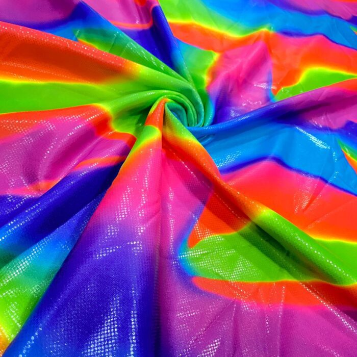 You’re viewing a Neon hologram foil print 100% polyester fabric, no-stretch
