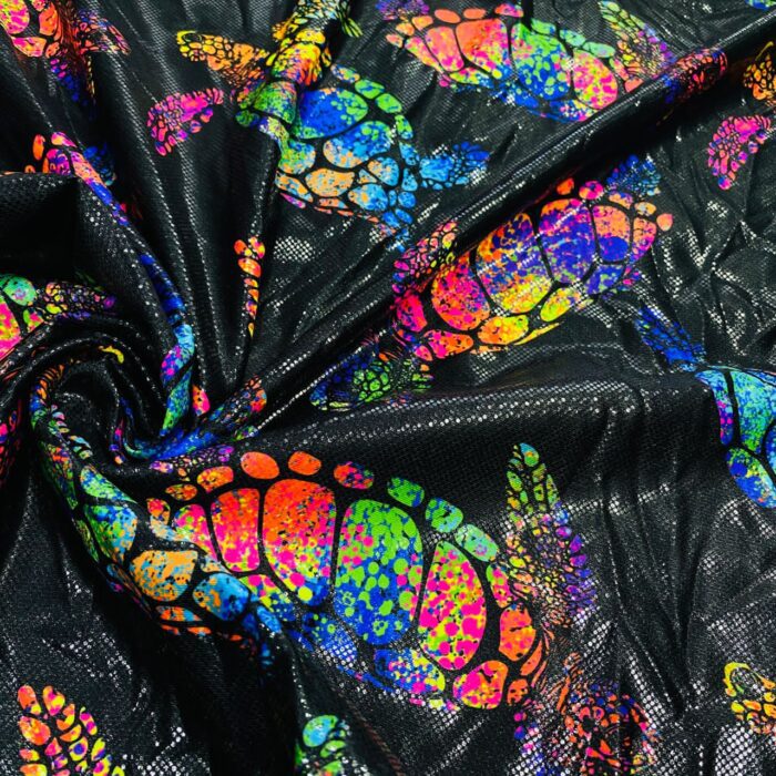 No-Stretch Turtles Neon Hologram Foil Print Polyester Spandex Fabric By Yard for Dress (243-8)