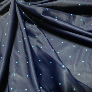 You are viewing Aquamarine Mini Polka Dot Dark Blue Background Print Nylon Lycra Spandex Fabric 4 Way Strech by Yard for swimwear dancewear dress gymwear.
