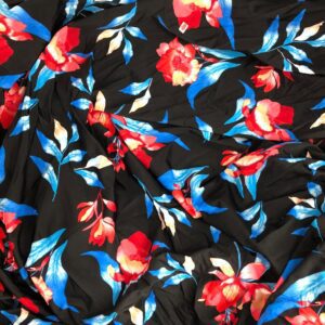 Hawaii Tropical pink Flowers Black Nylon Lycra Spandex Fabric 4 Way Stretch (243-2)