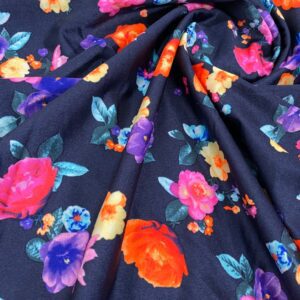 Flowers Print Nylon Lycra Spandex Fabric 4 Way Stretch by Yard for swimwear dancewear dress gymwear (243-7)