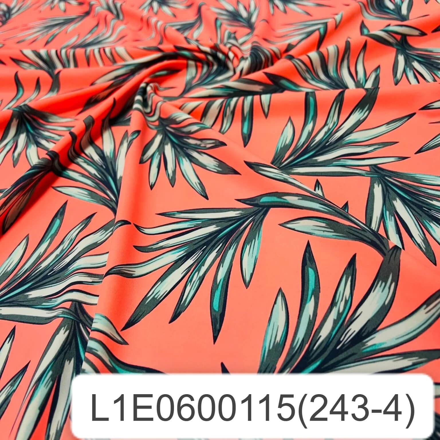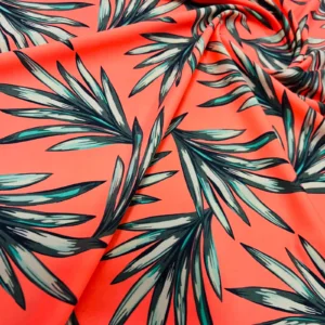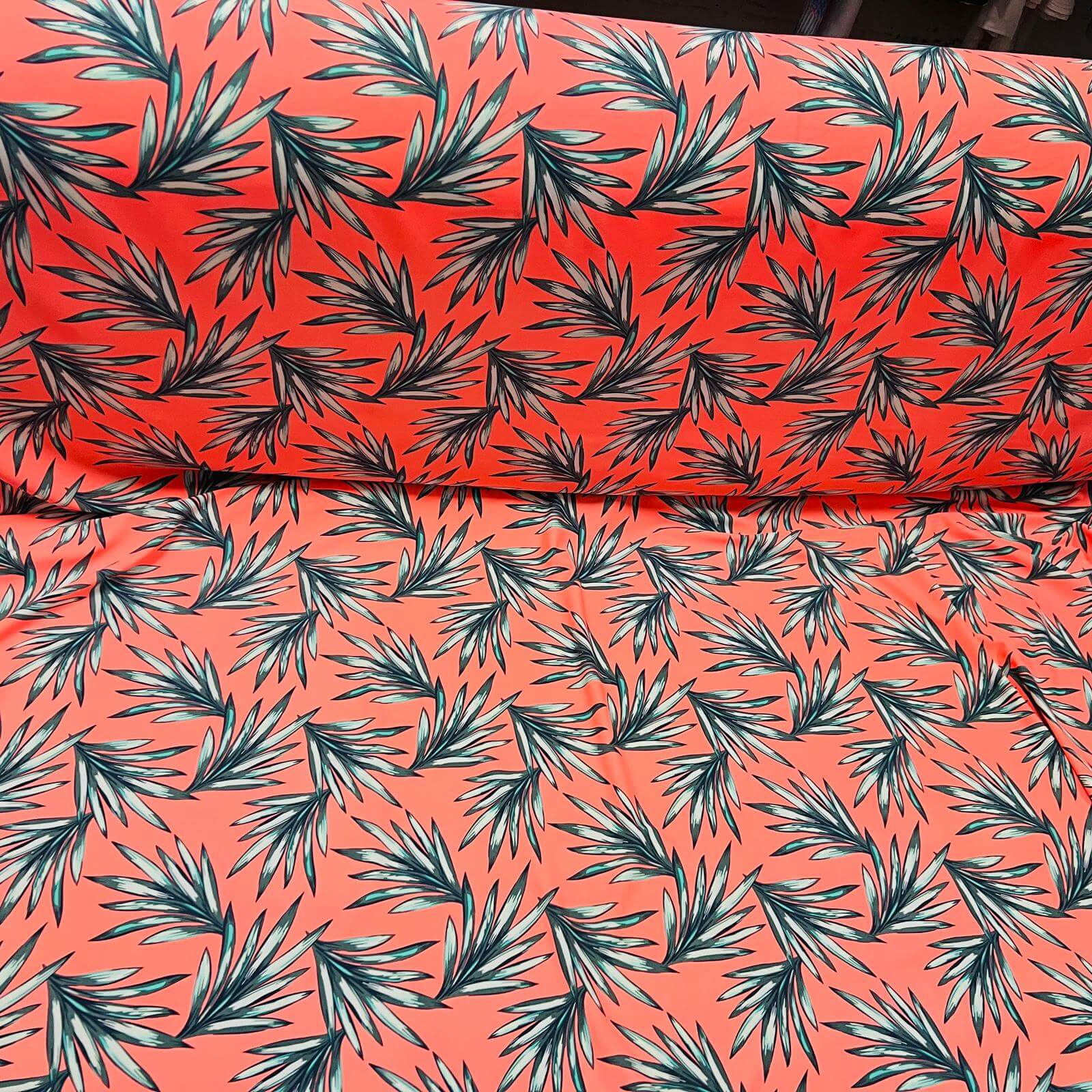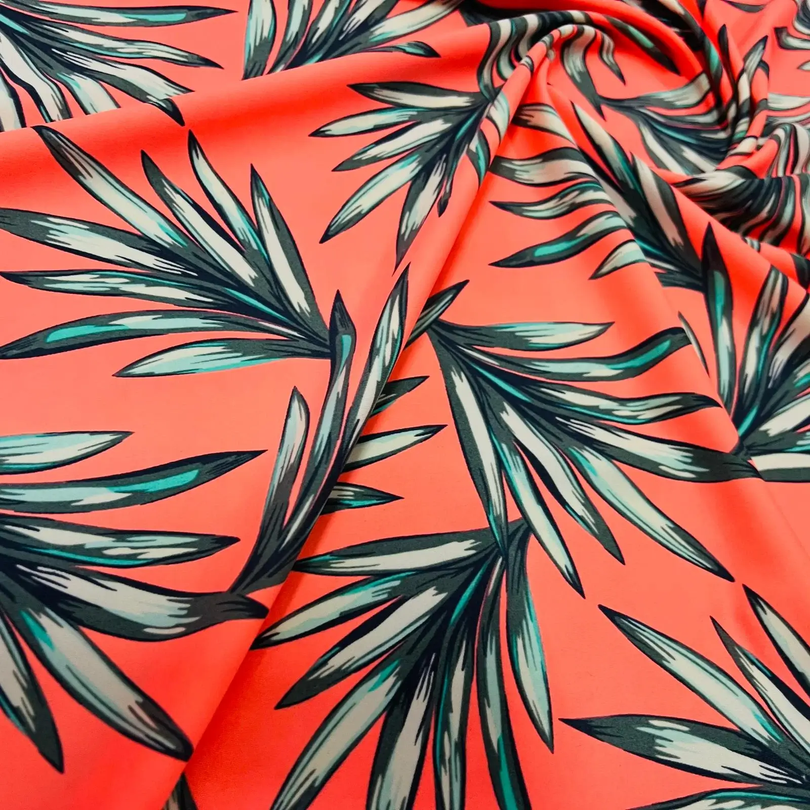 Gray Leaves Coral background Print Nylon Lycra Spandex Fabric 4 Way Stretch for swimwear dancewear gymwear sportwear dress skirt (205-4)