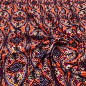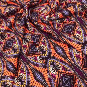 Orange Abstract Print Nylon Lycra Spandex Fabric 4 Way Stretch By Yard For Swimwear Dancewear Sportwear (243-7)
