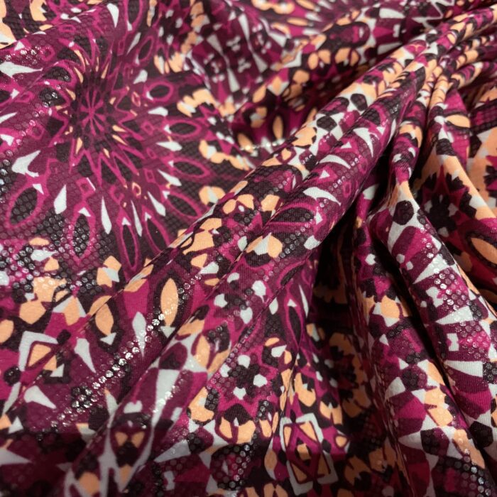 Mandala Redwine Print Nylon Lycra Spandex Fabric 4 Way Strech By Yard