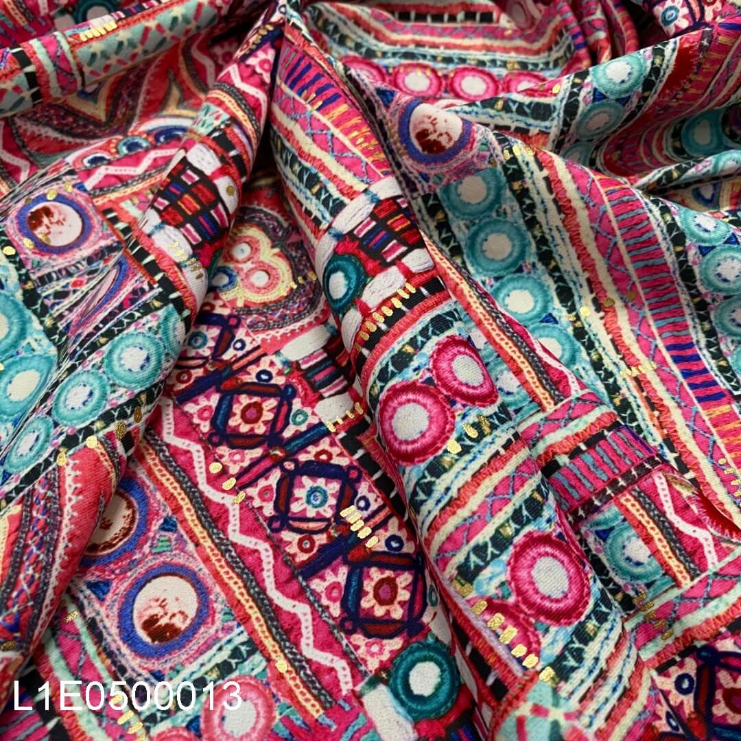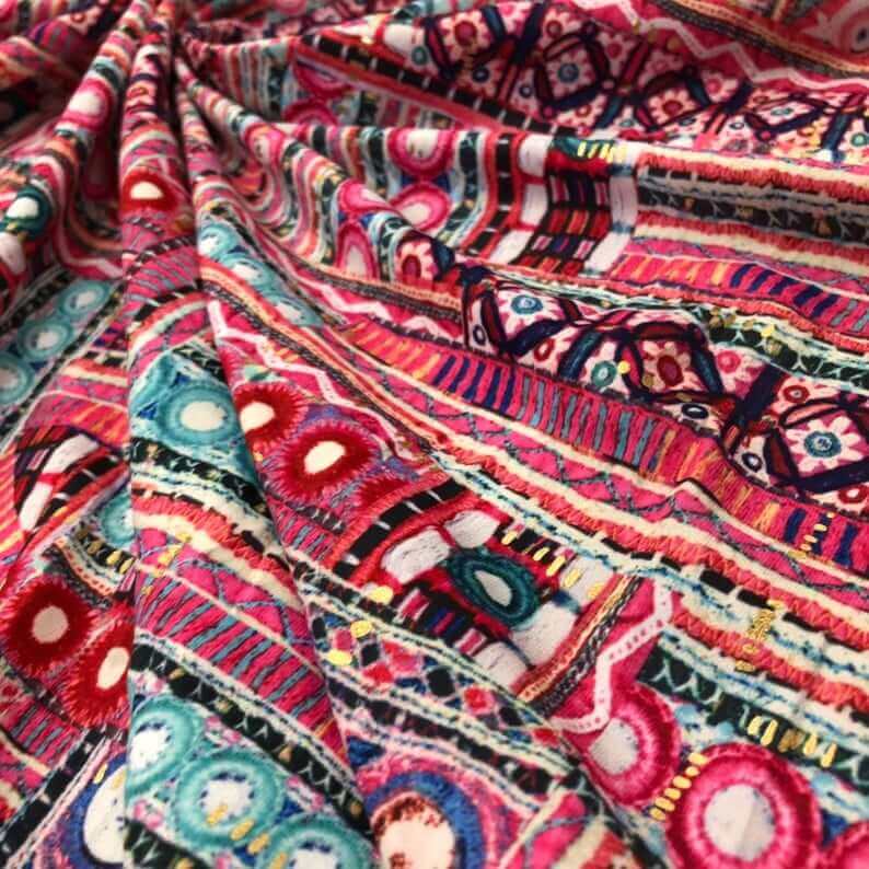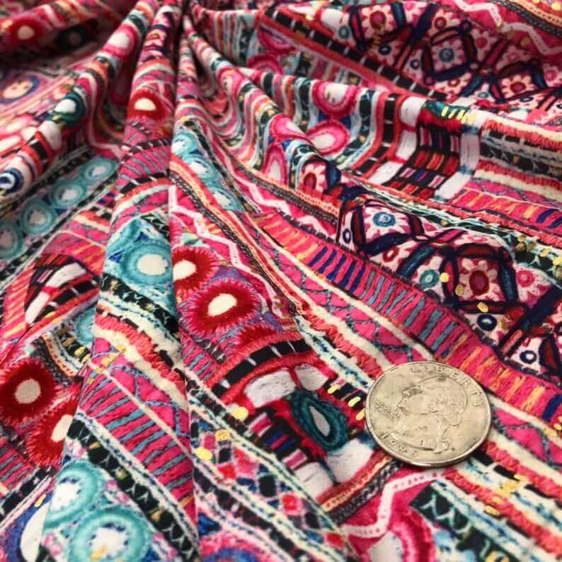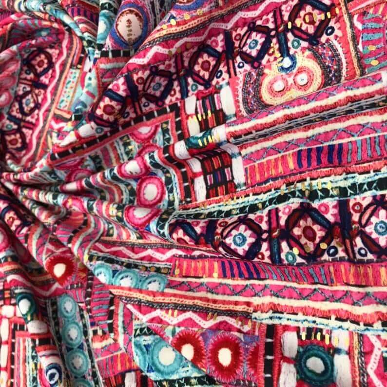 Colorful Geometric Ethnic Print Nylon Lycra Spandex Fabric 4 Way Stretch by Yard (242-4)