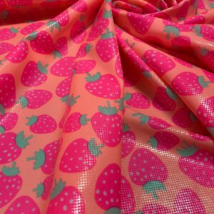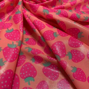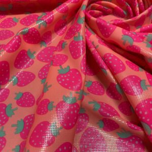 Strawberries print Nylon Lycra Spandex Fabric 4 Way Strech By Yard swimwear dancewear beachwear (279-4)