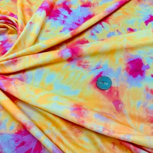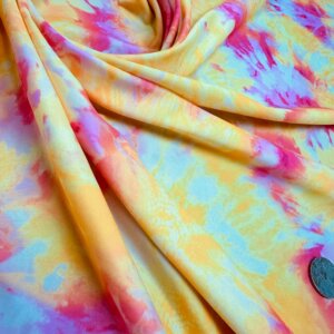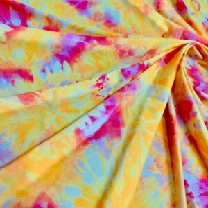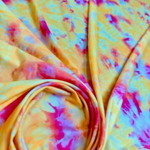 Orange and Fuchsia Tie Dye Print Nylon Lycra Spandex Fabric 4 Way Stretch By Yard for swimwear dancewear gymwear sportwear dress (203-1)