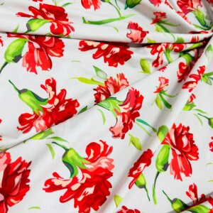 Orange Flowers White Background Print Nylon Lycra Spandex Fabric 4 Way Stretch By Yard for swimwear dancewear gymwear sportwear dress skirt (243-8)