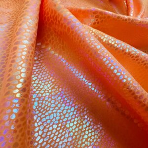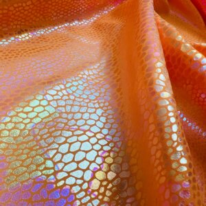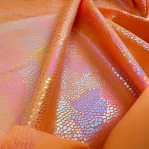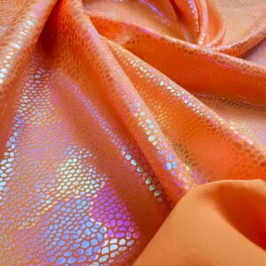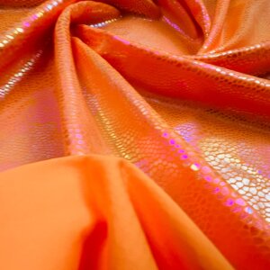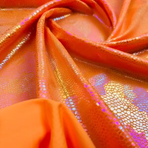 You are viewing Orange Pearl Hologram Metallic Foil Nylon Lycra Spandex Fabric 4 Way Stretch for swimwear dancewear sportwear dress