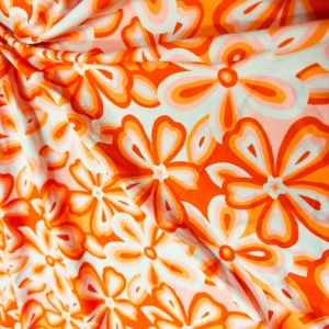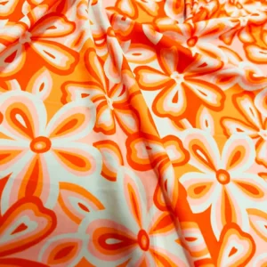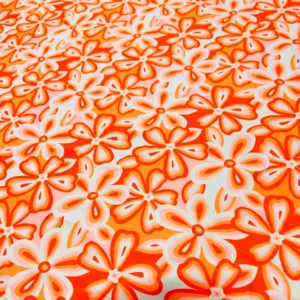 Orange Sea Flowers Print Nylon Spandex Fabric 4 Way Stretch By Yard for swimwear dancewear gymwear sportwear dress skirt (239-13)